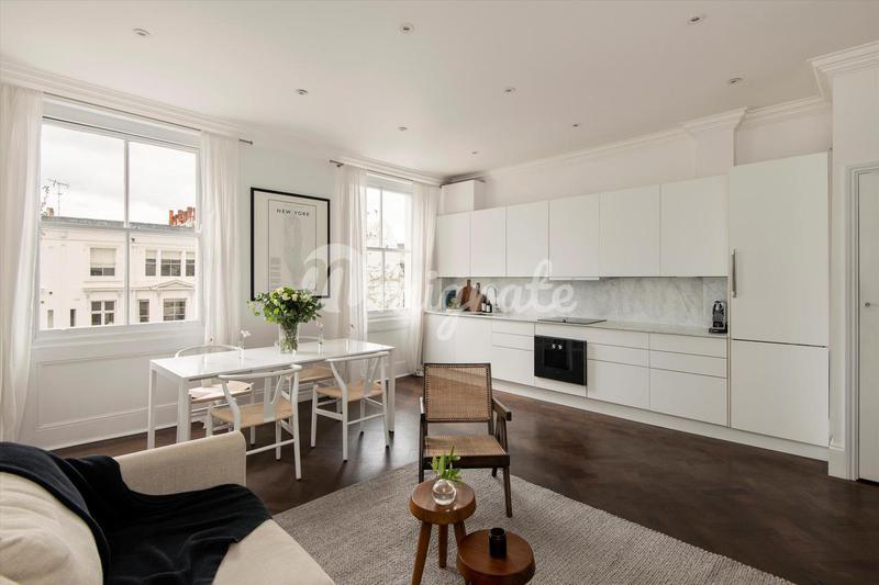 Эти просторные апартаменты с двумя спальнями расположены на девятом этаже этого популярного комплекса. Из них открывается прекрасный вид на парк Баттерси.