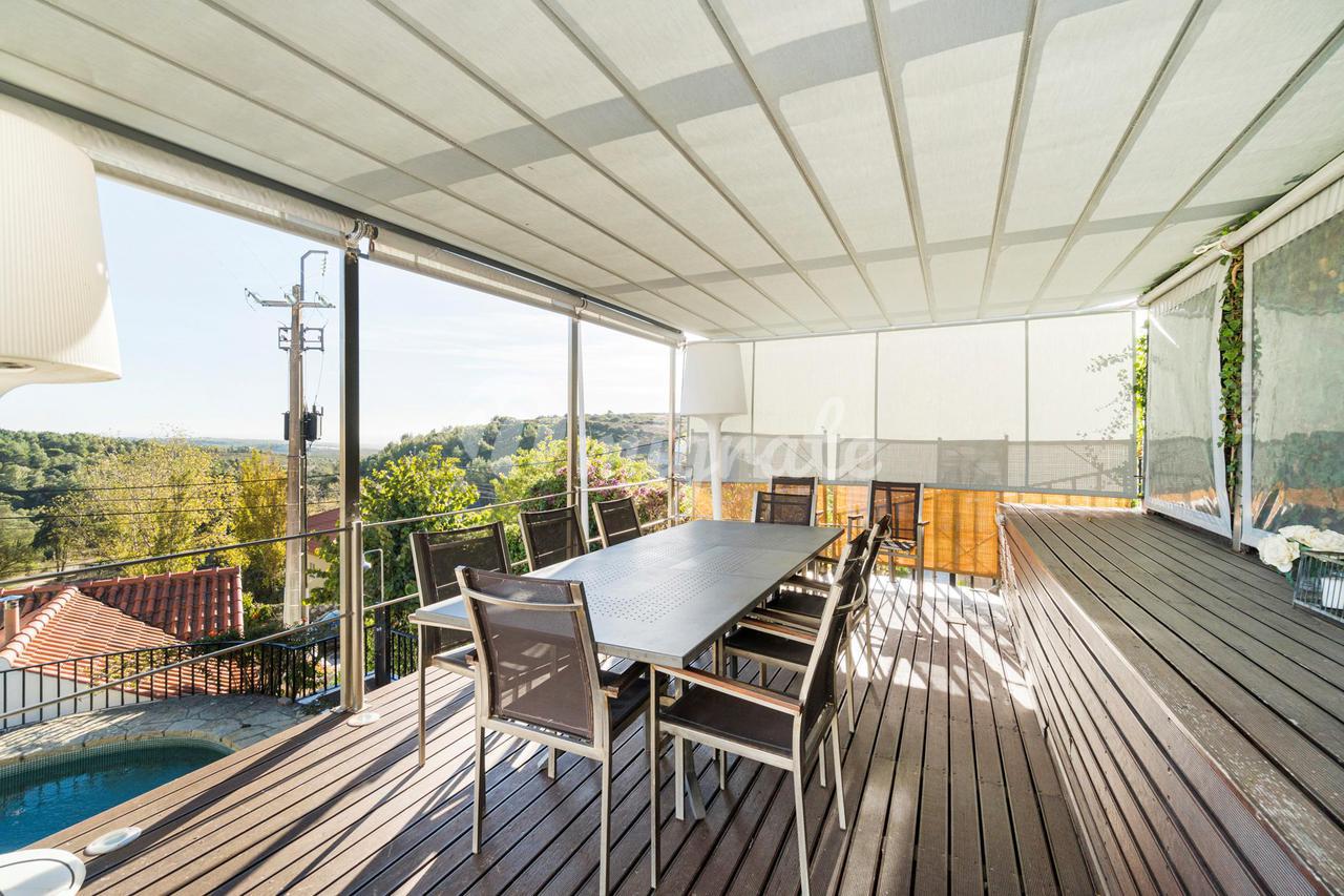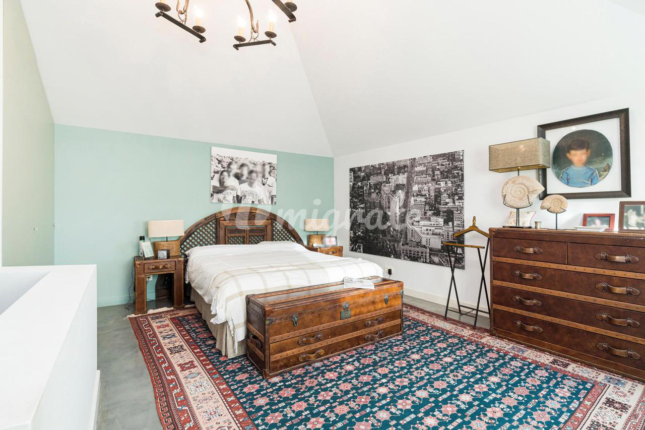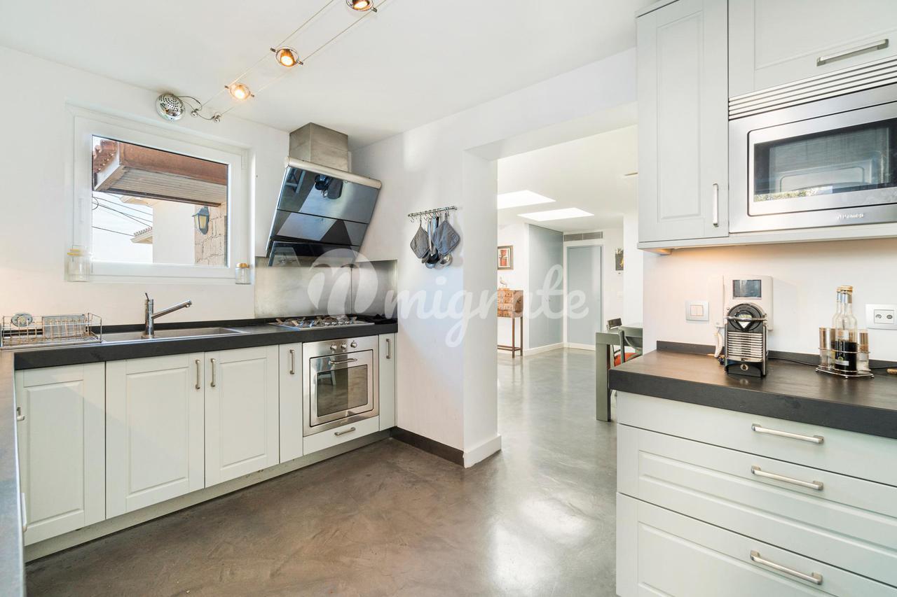 Недвижимость состоит из двух полностью отремонтированных традиционных домов. Главный дом расположен на трех этажах, а на первом этаже есть гостиная-столовая с камином и беспрепятственным видом на горы и море, гостевая ванная комната и оборудованная кухня. На первом этаже есть ТВ-зал, кабинет с камином и гардеробная. На втором этаже также есть спальный гарнитур. Во втором доме есть гостиная-столовая с камином и кухней открытого плана, гардеробная и спальня.