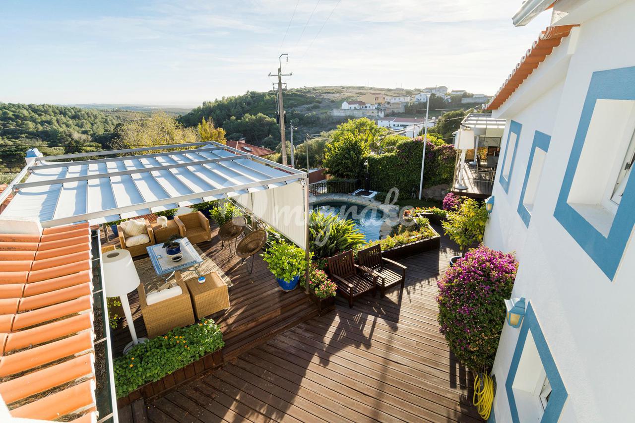 Этот замечательный дом с двумя спальнями расположен на участке площадью около 752 кв.м. с бассейном и садом. Из дома открывается вид на море и природный парк Синтра-Кашкайш.