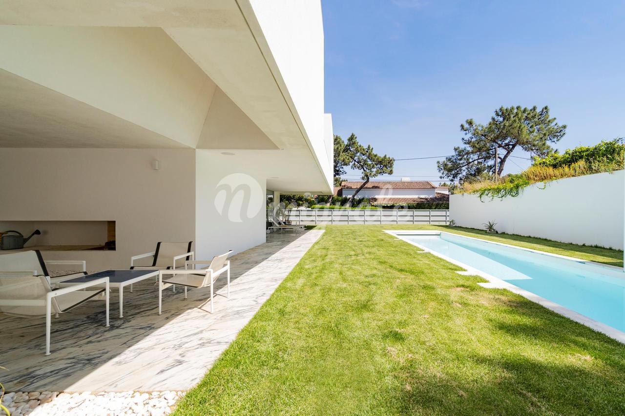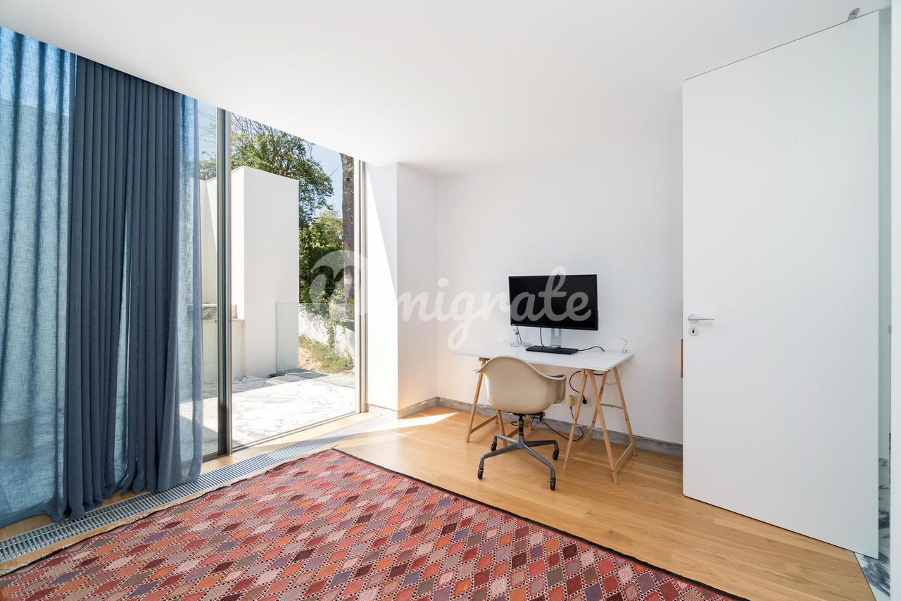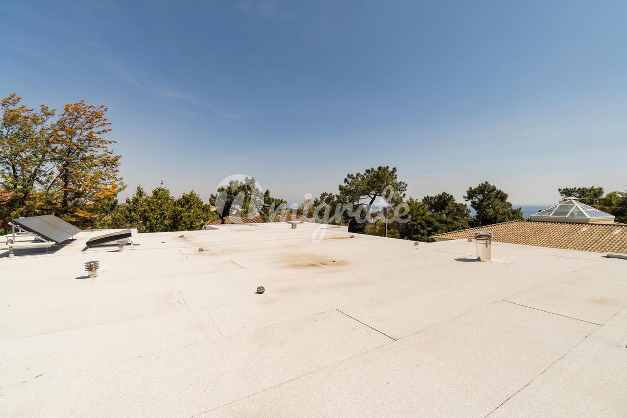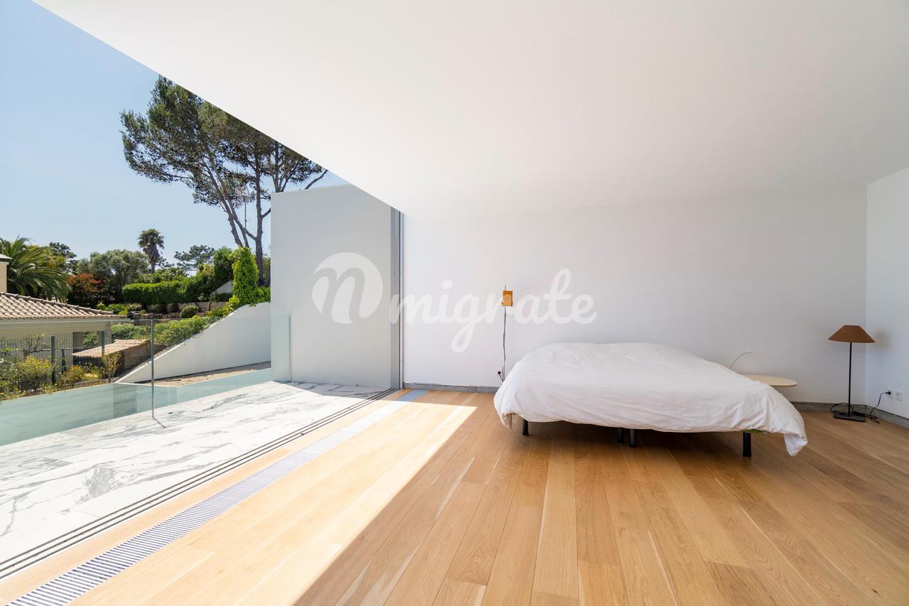 Этот двухэтажный дом имеет крышу с видом на море. На первом этаже есть прихожая и гостиная на южной стороне с выходом в сад и к бассейну с подогревом (длиной 17 метров) с гидромассажной ванной.
