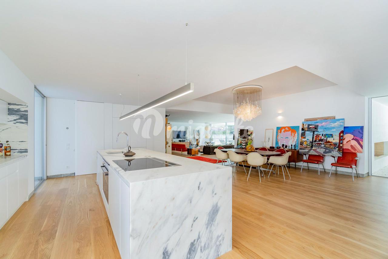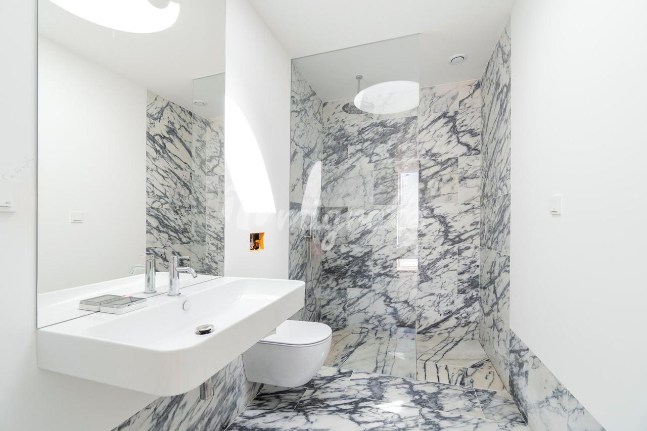В гостиной открытой планировки есть гостиная зона, обеденная зона и кухня открытой планировки, оборудованная техникой Miele и Bosch. На этом этаже также есть гостевая ванная комната и подсобное помещение, а также выход на несколько внешних террас. На верхнем этаже есть гостиная с выходом в четыре люкса, все с прямым выходом на частные террасы. В главной спальне есть великолепная ванная комната с ванной, мансардным окном, душем на открытом воздухе и турецкой баней в душевой зоне.