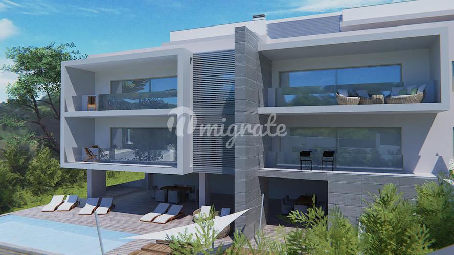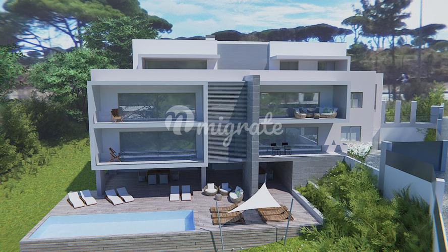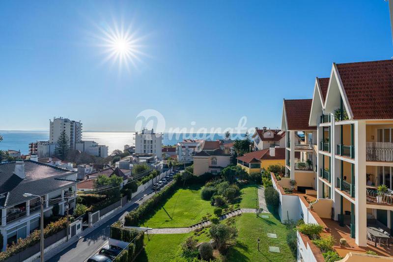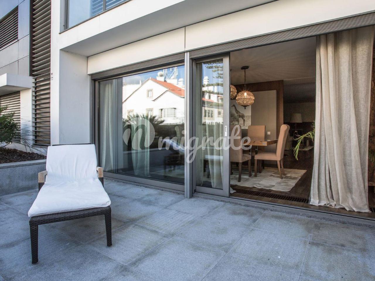 Трехкомнатная квартира с террасой в частном кондоминиуме с бассейном, круглосуточной охраной, сауной и садом, напротив казино Эшторил.
