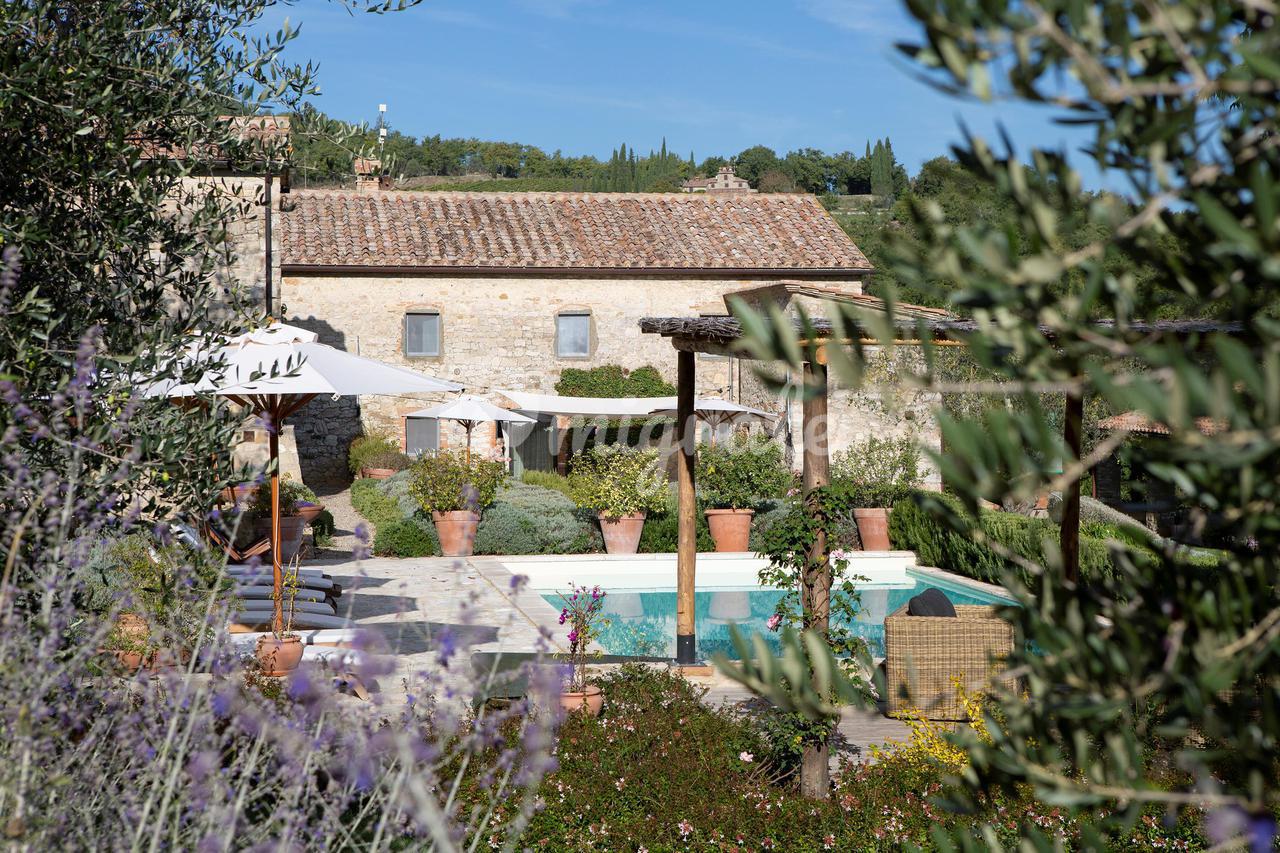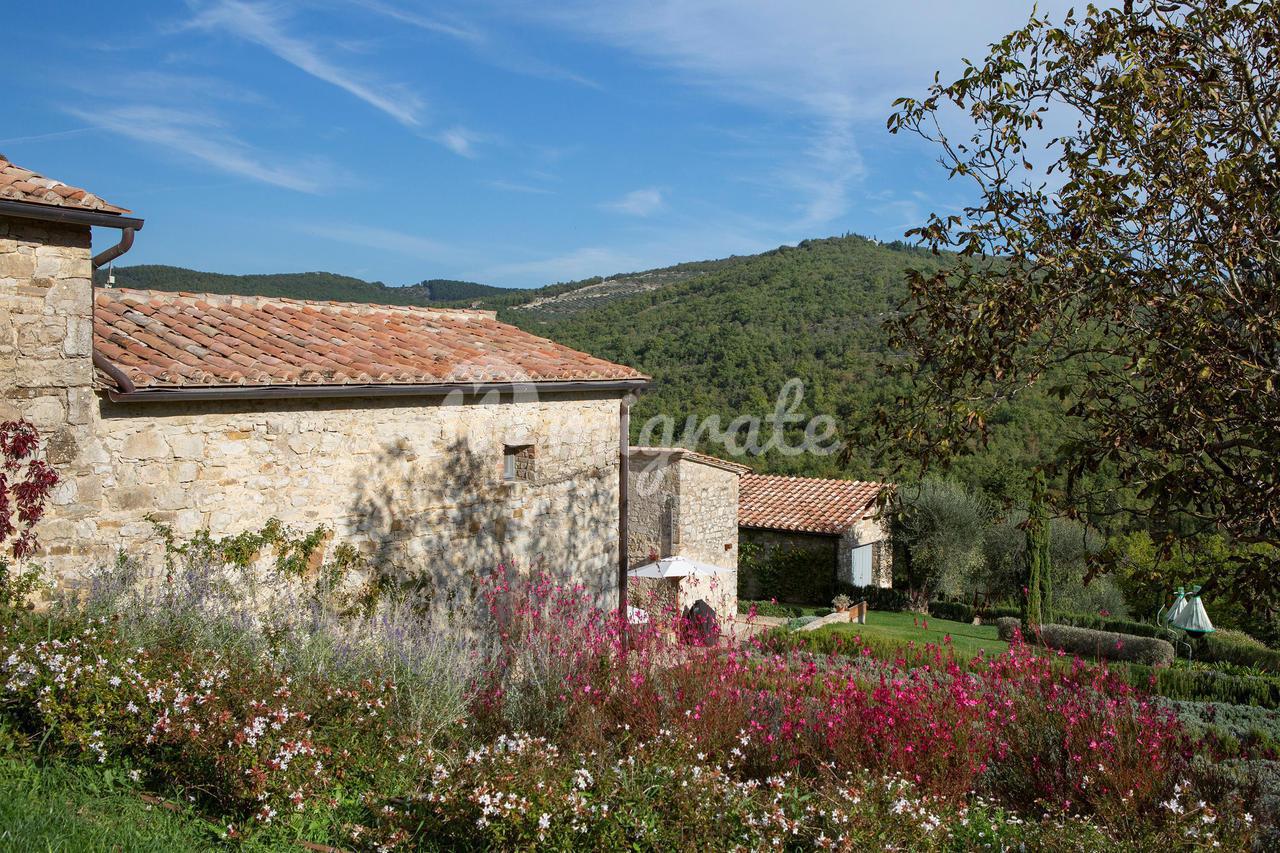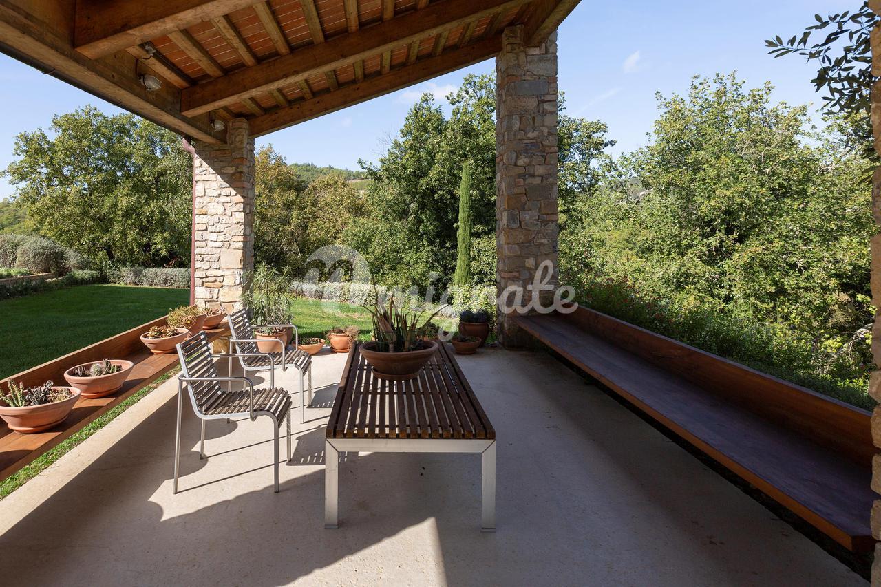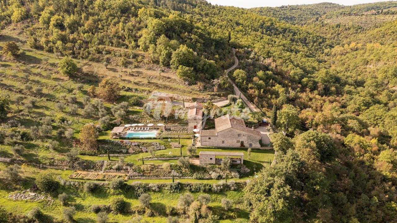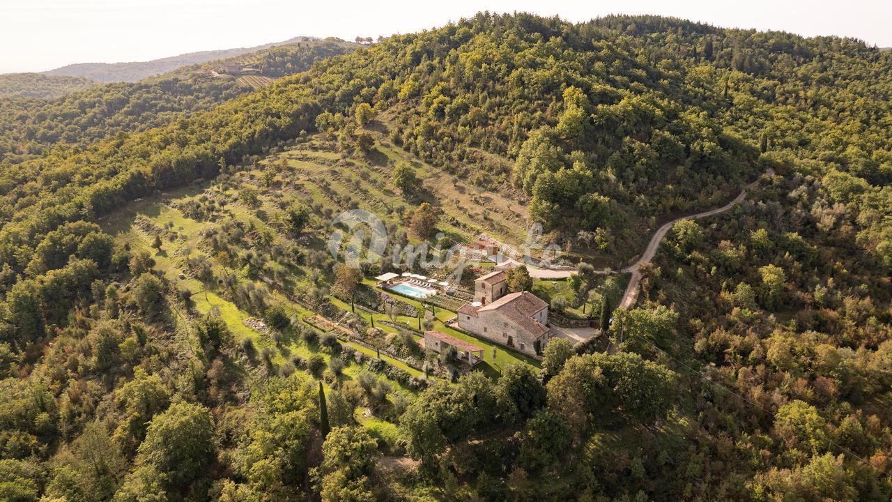 Это уникальное поместье площадью 70 акров было с любовью отреставрировано его нынешними владельцами, сохранив оригинальность исторических зданий и придав им современный вид, с роскошной внутренней отделкой и красиво оформленным, тщательно продуманным ландшафтным дизайном. К этому прекрасному дому, полностью уединенному с прекрасным панорамным видом на Кьянти, ведет частная дорога протяженностью около 1 км, окруженная лесом и более чем 100 оливковыми деревьями. Окружающая собственность земля великолепна и красиво очерчена. Широкие террасы тщательно благоустроены и засажены травяными газонами. Окруженный характерными каменными стенами, обилие посаженных кустарников, цветов, растений и деревьев придает ландшафту естественность. Повсюду есть автоматический полив и желанное дополнительное преимущество - частный колодец. Многочисленные уединенные пешеходные дорожки проходят через лесные массивы поместья, чтобы можно было осмотреть остатки древней этрусской мельницы рядом с успокаивающим ручьем, протекающим через территорию поместья. Поместье состоит из 4 зданий: главного фермерского дома с жилыми помещениями; амбара, построенного на трех уровнях, включающего тихую зону для занятий на верхнем этаже, многофункциональное пространство для развлечений или занятий йогой на втором уровне и душевую на первом уровне, куда легко попасть из бассейна или главного фермерского дома; каменный и деревянный здание с лоджией для обедов на открытом воздухе (в части этого здания отдельно расположены службы и складские помещения), а из деревянного каркаса, расположенного на верхнем уровне собственности, открываются великолепные виды на сельскую местность и место, откуда можно наслаждаться уединением, ежедневными физическими упражнениями или ночным созерцанием звезд. Главный фермерский дом состоит из: хорошо оборудованной островной кухни; большой кладовой со всеми современными удобствами; просторной столовой; гостиной двойной высоты с чугунной дровяной печью и еще двух приемных, в одной из которых установлена дополнительная чугунная дровяная печь. Этот уровень на первом этаже представляет собой восхитительную, универсальную и уютную зону для сбора семьи и друзей, созданную в историческом фермерском доме. Внешний внутренний двор - идеальное место для трапезы на свежем воздухе с видом на пышные заросли лаванды, украшенные бабочками, и других тосканских видов и цветов, украшающих близлежащие сады. Также имеется доступ к большому огороду, который находится на территории отеля. Четыре спальни на первом этаже светлые, с прохладной отделкой, а ванные комнаты были тщательно спланированы с использованием современной сантехники. Прихожая главной спальни - это удивительно универсальное пространство, в котором можно читать, работать, а также используется для дополнительного размещения гостей. Потолки с деревянными балками и полированные бетонные полы придают этому традиционному фермерскому дому желанный современный вид, в котором гармонично сочетаются оба стиля. Уютный открытый бассейн с пресной водой, облицованный ароматной лавандой и розмарином, выложен натуральным камнем и располагает просторным пространством для принятия солнечных ванн. Деревянная беседка с деревянным настилом создает условия для отдыха с удобными крес