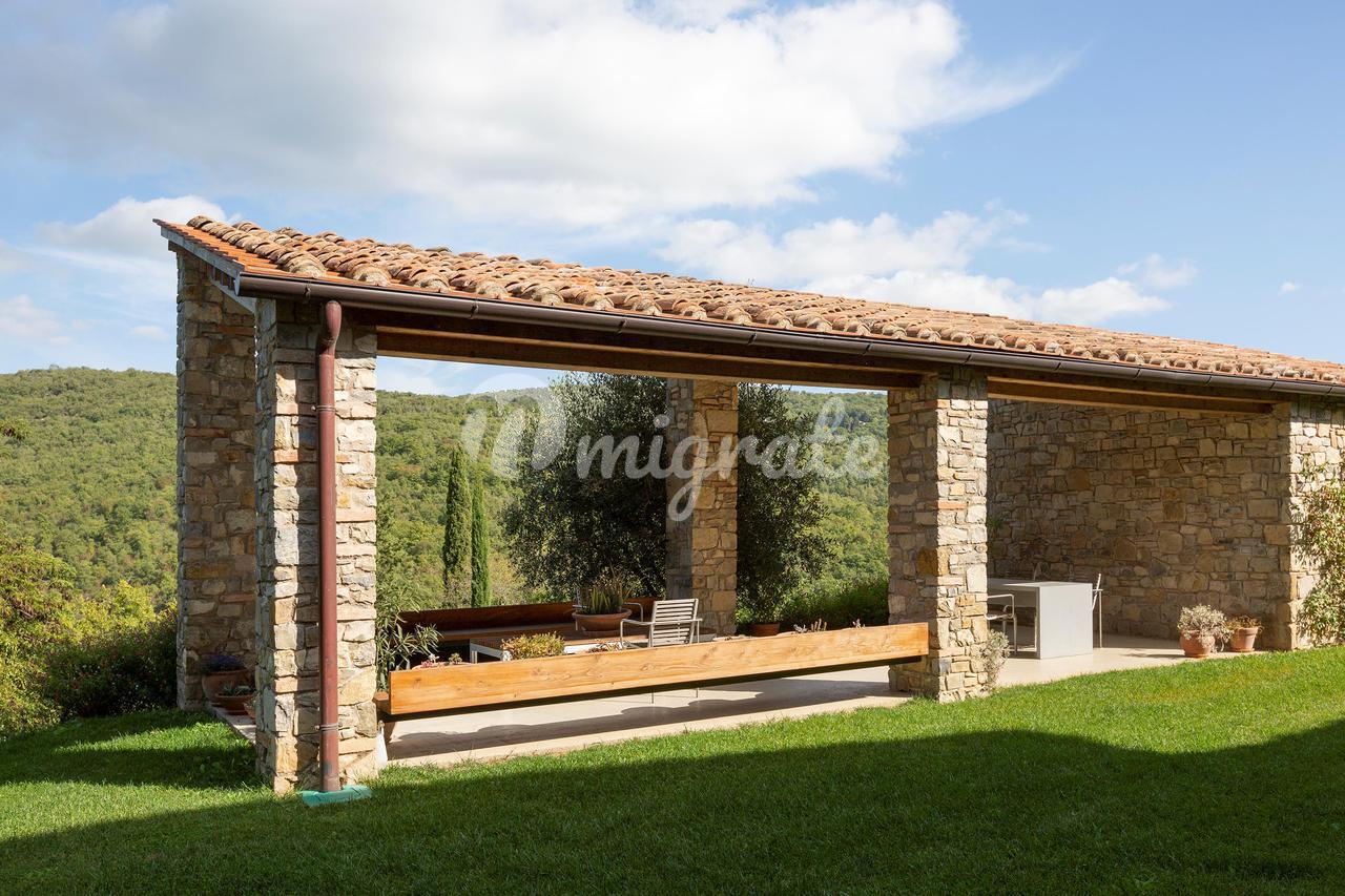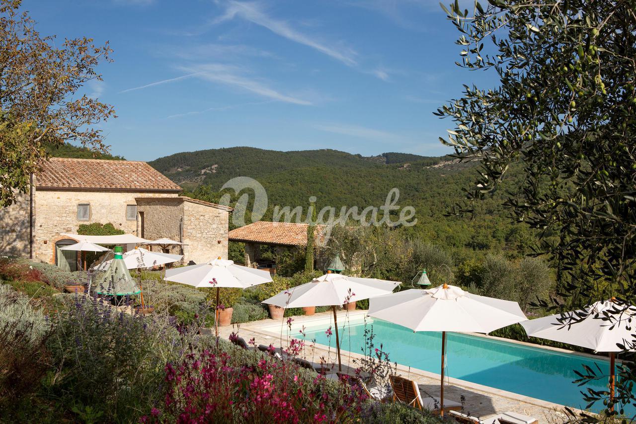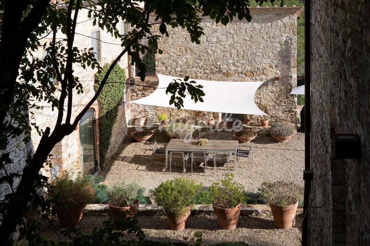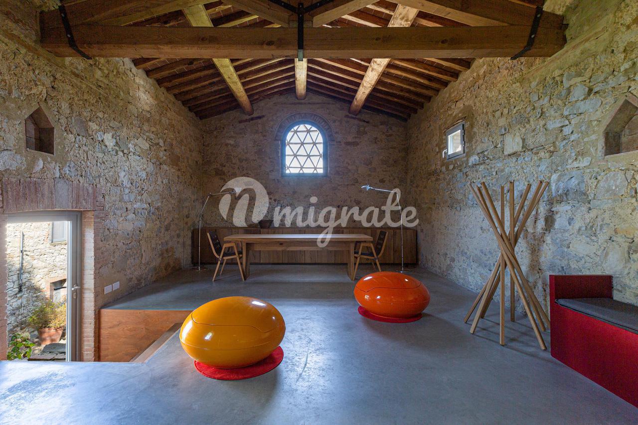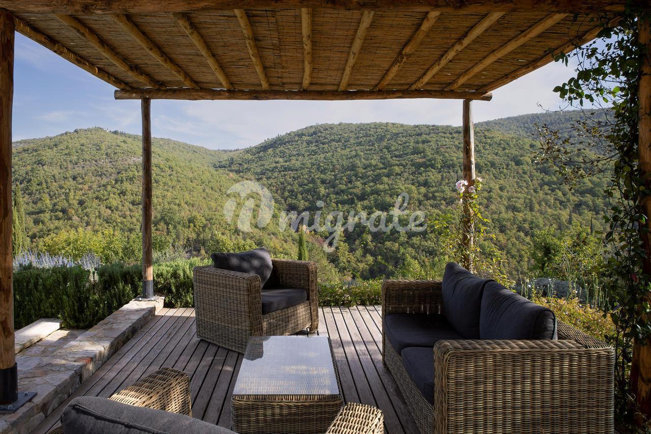 Это уникальное поместье площадью 70 акров было с любовью отреставрировано его нынешними владельцами, сохранив оригинальность исторических зданий и придав им современный вид, с роскошной внутренней отделкой и красиво оформленным, тщательно продуманным ландшафтным дизайном. К этому прекрасному дому, полностью уединенному с прекрасным панорамным видом на Кьянти, ведет частная дорога протяженностью около 1 км, окруженная лесом и более чем 100 оливковыми деревьями. Окружающая собственность земля великолепна и красиво очерчена. Широкие террасы тщательно благоустроены и засажены травяными газонами. Окруженный характерными каменными стенами, обилие посаженных кустарников, цветов, растений и деревьев придает ландшафту естественность. Повсюду есть автоматический полив и желанное дополнительное преимущество - частный колодец. Многочисленные уединенные пешеходные дорожки проходят через лесные массивы поместья, чтобы можно было осмотреть остатки древней этрусской мельницы рядом с успокаивающим ручьем, протекающим через территорию поместья. Поместье состоит из 4 зданий: главного фермерского дома с жилыми помещениями; амбара, построенного на трех уровнях, включающего тихую зону для занятий на верхнем этаже, многофункциональное пространство для развлечений или занятий йогой на втором уровне и душевую на первом уровне, куда легко попасть из бассейна или главного фермерского дома; каменный и деревянный здание с лоджией для обедов на открытом воздухе (в части этого здания отдельно расположены службы и складские помещения), а из деревянного каркаса, расположенного на верхнем уровне собственности, открываются великолепные виды на сельскую местность и место, откуда можно наслаждаться уединением, ежедневными физическими упражнениями или ночным созерцанием звезд. Главный фермерский дом состоит из: хорошо оборудованной островной кухни; большой кладовой со всеми современными удобствами; просторной столовой; гостиной двойной высоты с чугунной дровяной печью и еще двух приемных, в одной из которых установлена дополнительная чугунная дровяная печь. Этот уровень на первом этаже представляет собой восхитительную, универсальную и уютную зону для сбора семьи и друзей, созданную в историческом фермерском доме. Внешний внутренний двор - идеальное место для трапезы на свежем воздухе с видом на пышные заросли лаванды, украшенные бабочками, и других тосканских видов и цветов, украшающих близлежащие сады. Также имеется доступ к большому огороду, который находится на территории отеля. Четыре спальни на первом этаже светлые, с прохладной отделкой, а ванные комнаты были тщательно спланированы с использованием современной сантехники. Прихожая главной спальни - это удивительно универсальное пространство, в котором можно читать, работать, а также используется для дополнительного размещения гостей. Потолки с деревянными балками и полированные бетонные полы придают этому традиционному фермерскому дому желанный современный вид, в котором гармонично сочетаются оба стиля. Уютный открытый бассейн с пресной водой, облицованный ароматной лавандой и розмарином, выложен натуральным камнем и располагает просторным пространством для принятия солнечных ванн. Деревянная беседка с деревянным настилом создает условия для отдыха с удобными крес