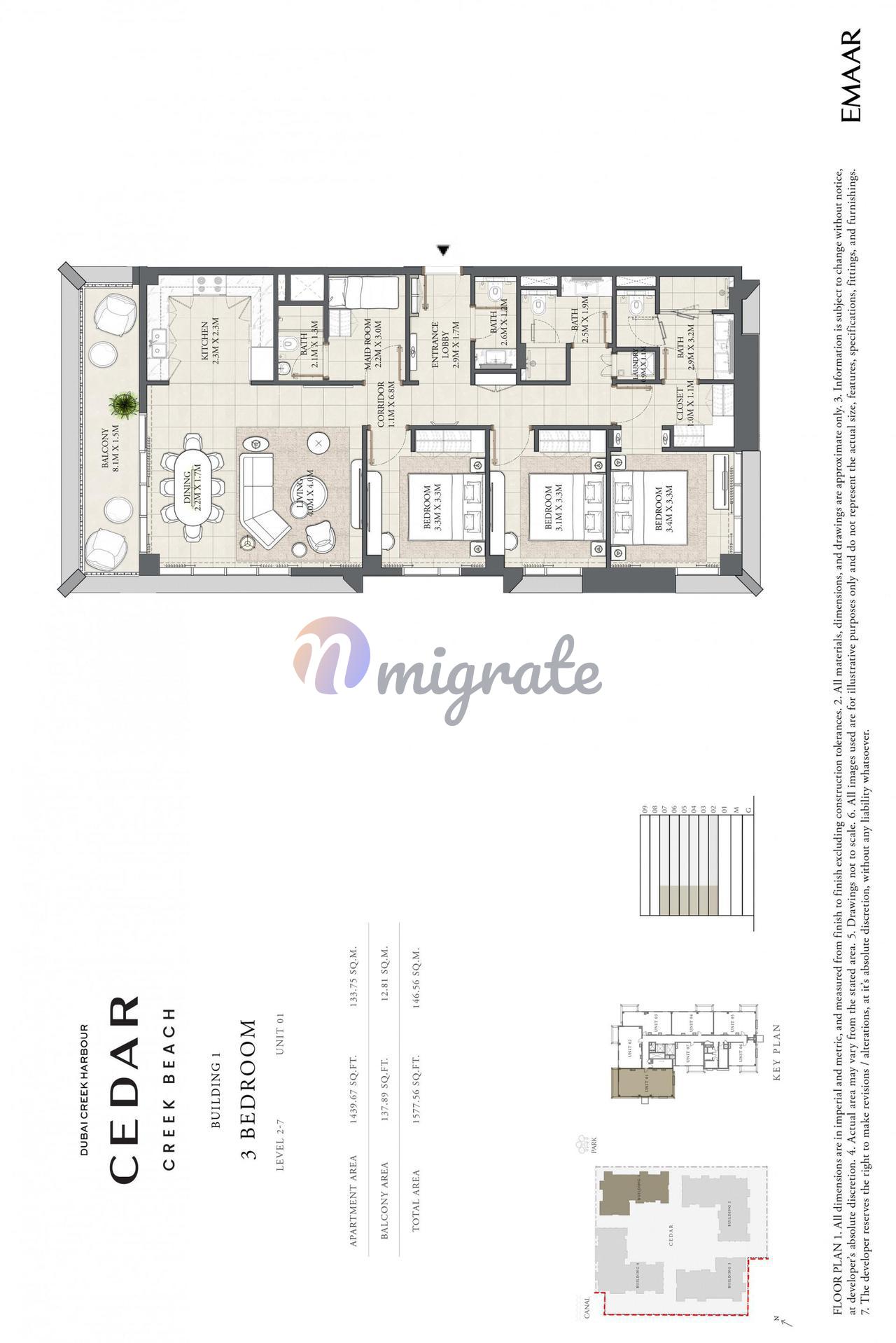 Мы рады представить вам трехкомнатную квартиру в Cedar by Emaar Properties.