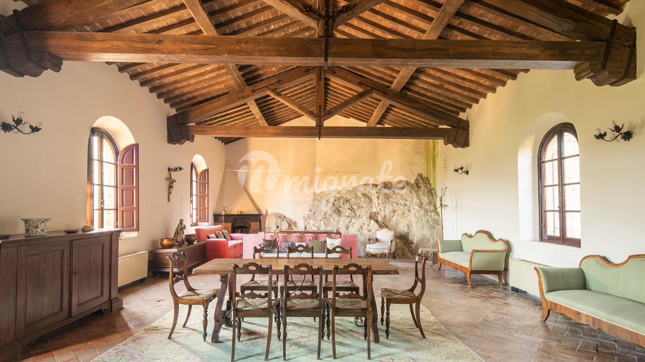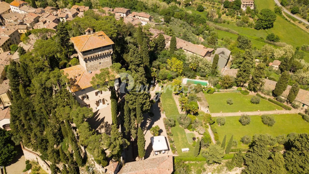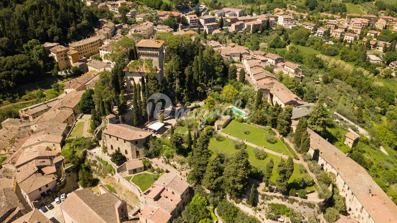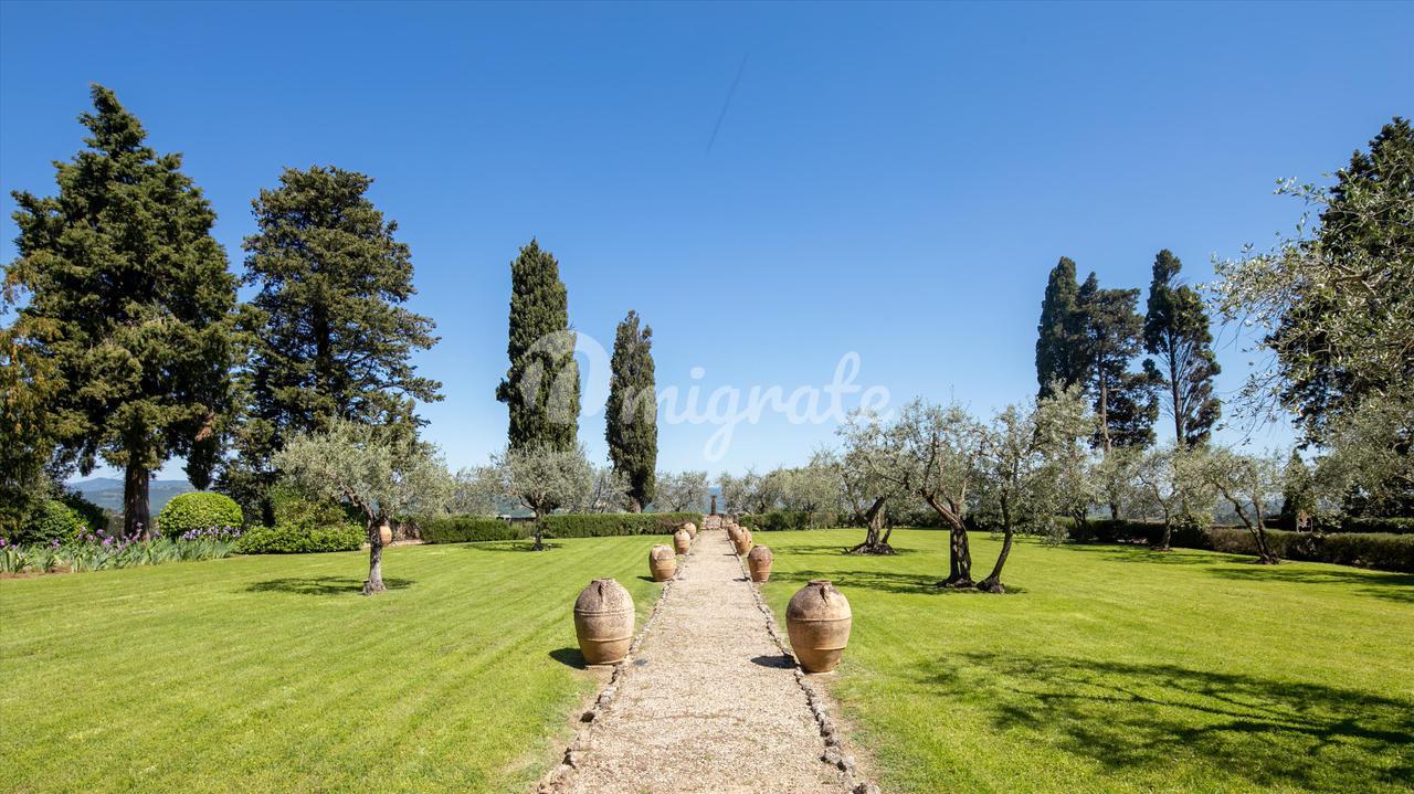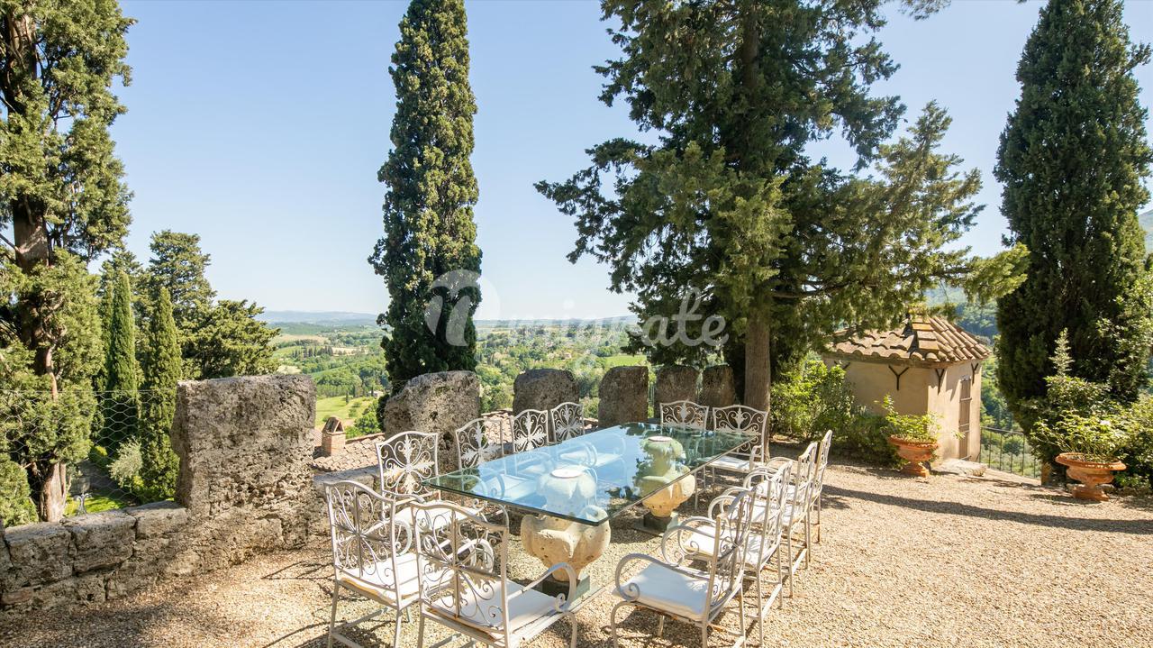Недвижимость расположена на возвышенности с прекрасной подъездной дорогой, заканчивающейся романским амфитеатром, и около 1 га великолепных садов, в которых в изобилии растут красивые растения, кустарники и цветы, а также оливковая роща и вековые деревья, предлагая оазис тишины и спокойствия. Главная вилла имеет 7 спален, каждая со своей собственной ванной комнатой, каждая уникальна по стилю и отделана мрамором различных цветов. В отеле есть две гостиные и зона приема гостей с камином. Башня, состоящая из 3 этажей, ведет к открытому на 360 градусов "бельведеру" с великолепным видом на Монте Четона, на город и вниз к Валь-ди-Кьяна. Есть еще два здания, одно с 6 апартаментами в общей сложности с 10 спальнями и 6 ванными комнатами, а второе, известное как Армерия (или здание оружейной палаты), которое выходит окнами на чудесные сады и представляет исторический интерес, используется для приемов и развлечений гостей. В нем также есть кухня и ванная комната. Природная пещера из травертина является местом для небольшой часовни, которая открыта для публики и доступна извне. Собственность дополняется бассейном в римском стиле с фонтаном, окруженным пальмами и садами.