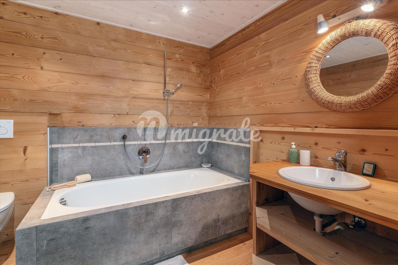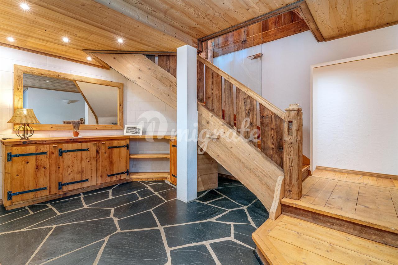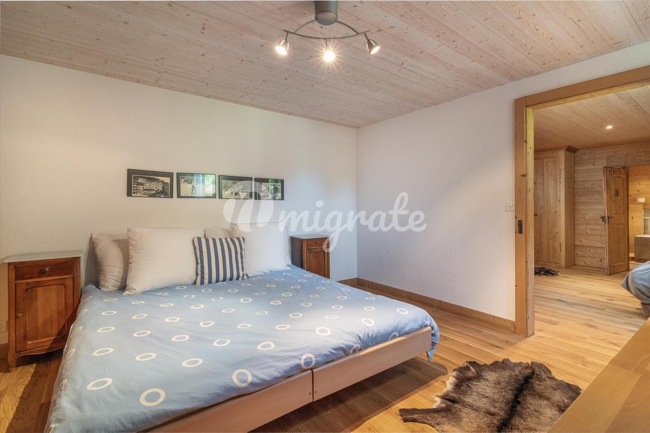 Это шале расположено на трех этажах и состоит из двух двойных гостиных на первом этаже, отдельной столовой, просторной кухни и террасы с балконом и садом. На нижнем первом этаже есть три спальни с ванными комнатами, а на верхнем этаже находится недавно отремонтированная главная спальня с ванными комнатами и еще две спальни с отдельной ванной комнатой.