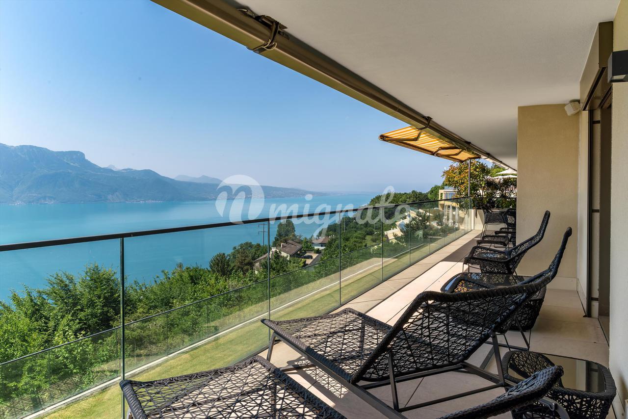 Эта квартира расположена на возвышенности, откуда открывается захватывающий дух вид на озеро и горы. Квартира просторная и с большим количеством естественного света благодаря своей ориентации на юг с видом на озеро.