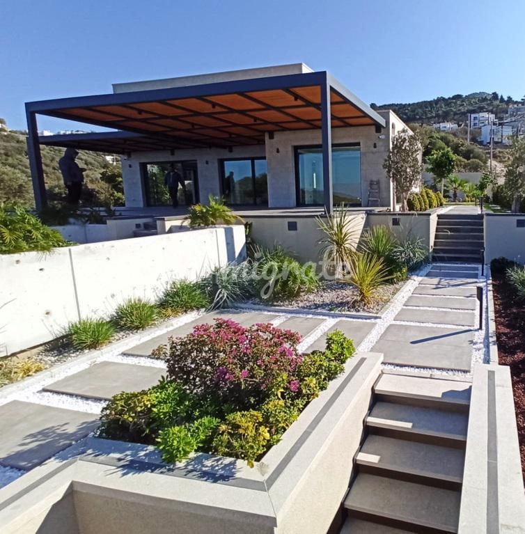 Главный дом 3 спальни + 1 гостиная, гостевой дом 3 спальни + 1 гостиная, флигель 1 спальня + 1 гостиная. Вид на природу и море. На участке 1300 м2 - 2-этажный основной дом 245 м2: 3 спальни + 3 ванные комнаты, гостевой дом 154 м2 (3 спальни + 1 гостиная), флигель 60 м2 (1 спальня и 1 гостиная). На территории: 75 м2 частный бассейн, большой ландшафтный сад, эстетичная беседка с навесом от солнца, встроенная кухонная утварь, полы с подогревом, система отопления/охлаждения, место для костра рядом с бассейном. Инфраструктура: Пристань Ялыкавак, рестораны, магазины, рынки, школы, больницы на расстоянии 10–12 минут, 3 км до пристани Ялыкавак, 21 км до центра Бодрума, 55 км до аэропорта.