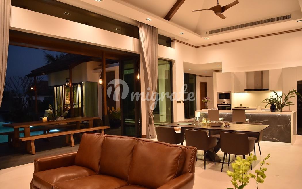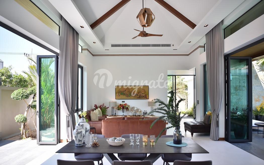 Вилла представляет собой отличное соотношение цены и качества. Размер этих вилл делает их идеальным домом для отдыха, и можно ожидать большой доход от аренды. Большая гостиная открытой планировки с 6-метровыми потолками и раздвижными дверями с прямым выходом к частному бассейну и террасе с видом на озеро.