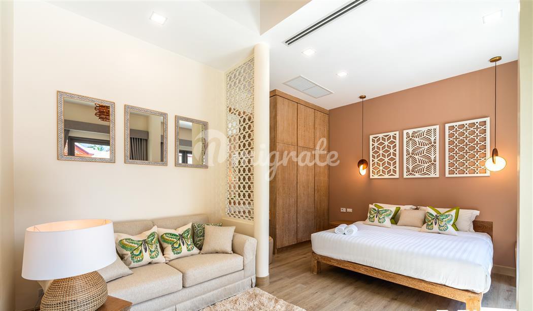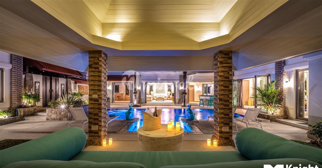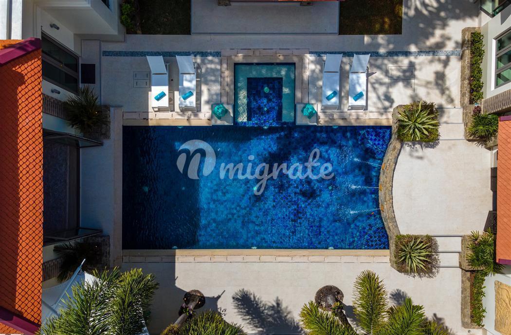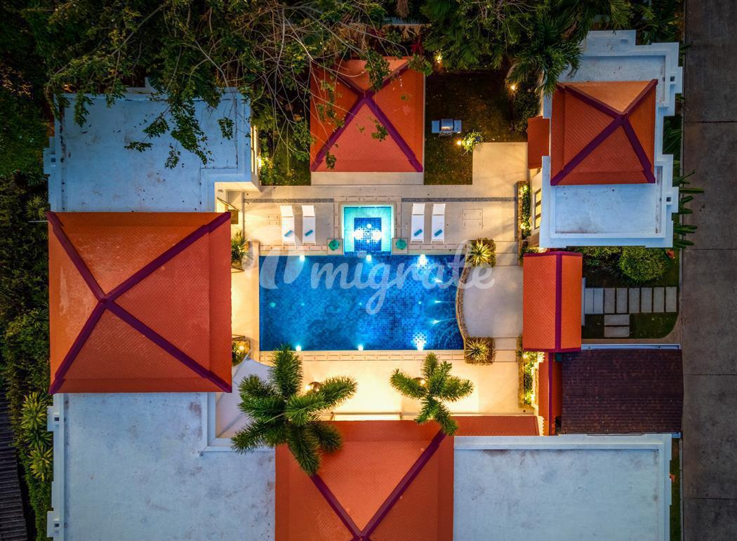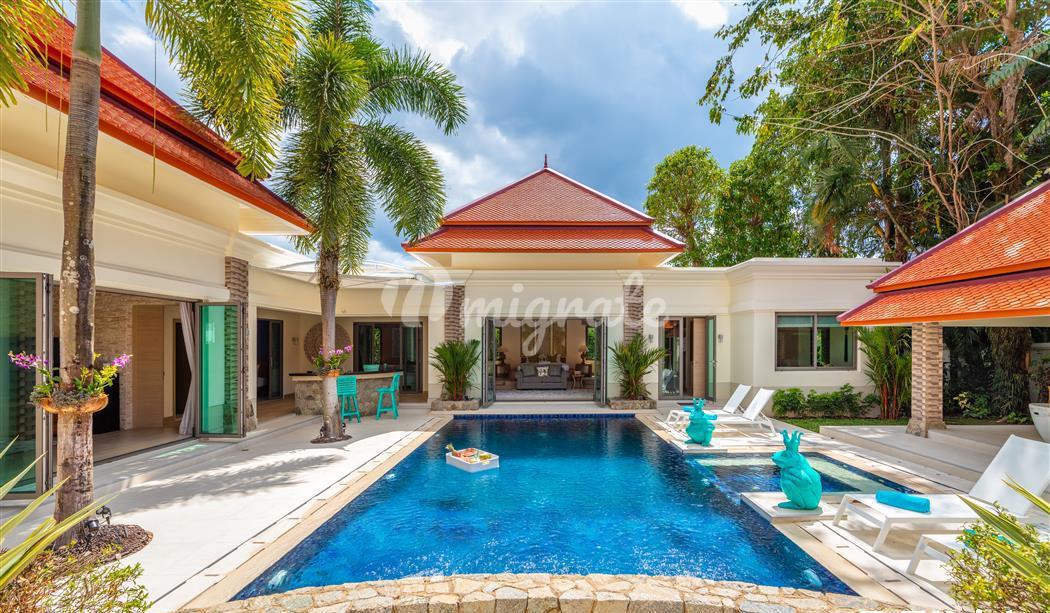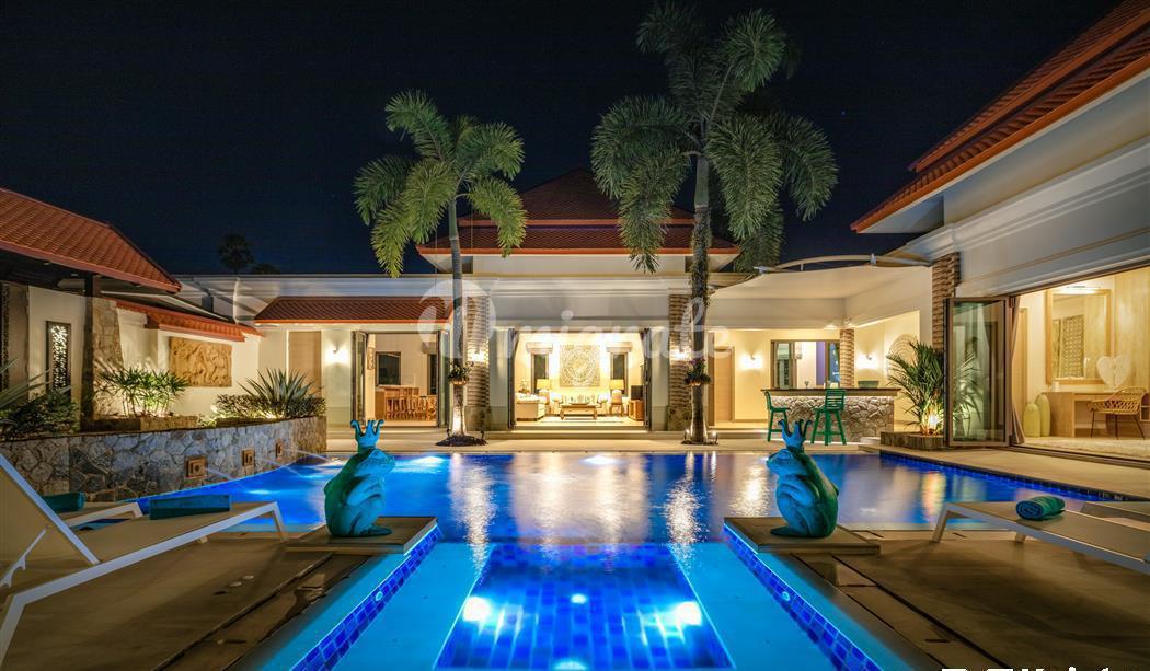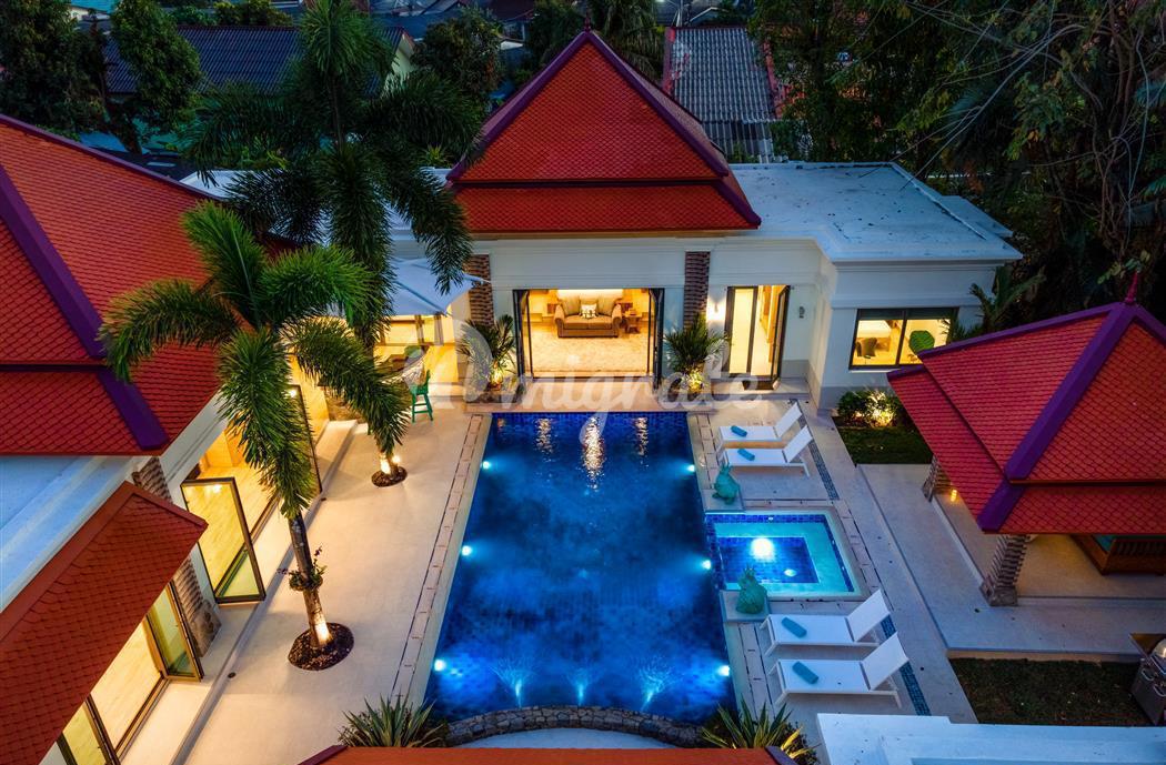 Расположен в одном из самых эксклюзивных жилых комплексов Пхукета, в отличном месте на северо-западном побережье острова, недалеко от Боут-авеню, Лагуны и менее чем в 1 км. на прекрасные берега пляжа Банг Тао. Вилла очень просторная, со всеми спальнями и жилыми зонами, выходящими на бассейн, джакузи и сад, что позволяет выходить на улицу внутрь дома.