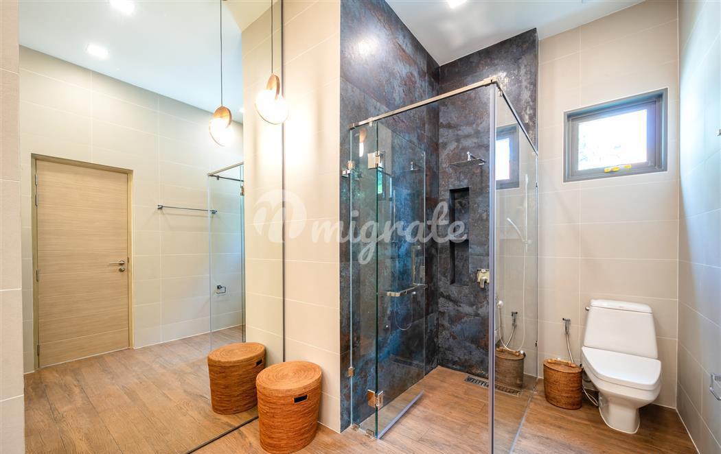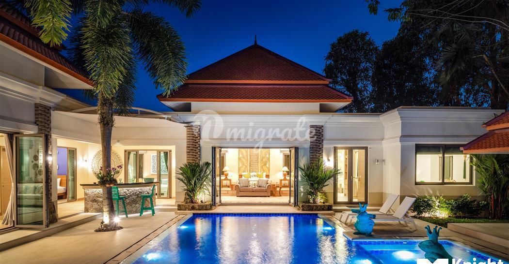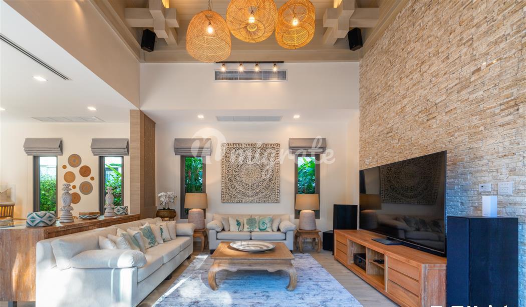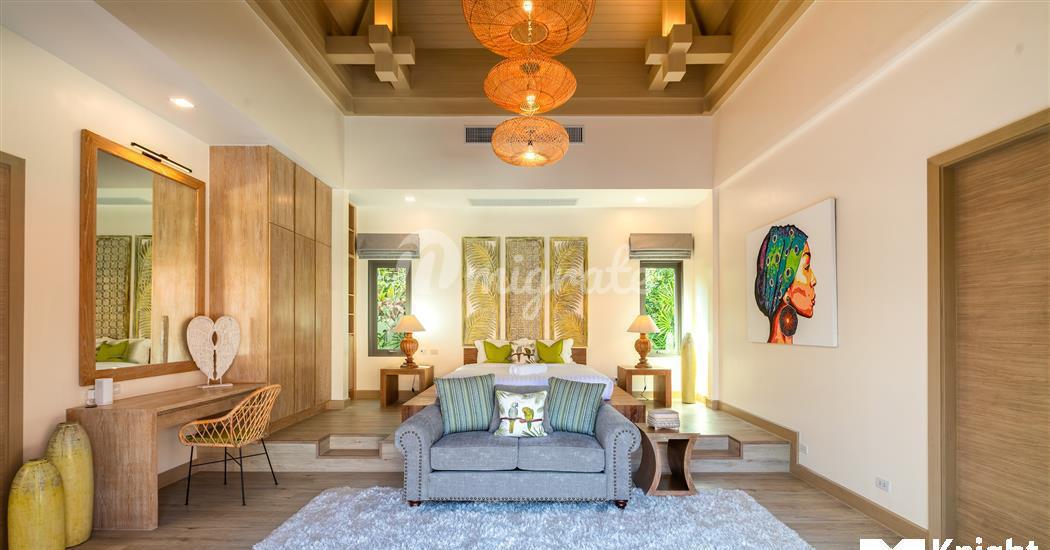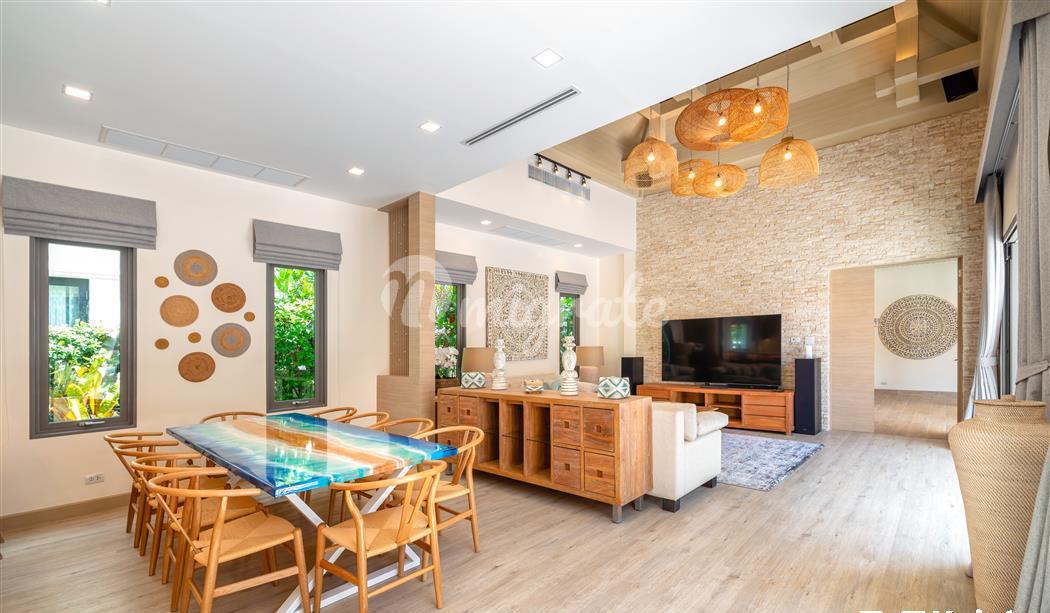 Эта великолепная вилла с 5 спальнями в балийском стиле, расположенная в тихом закрытом поселке, сочетает в себе современные удобства и элегантность тайской архитектуры.
