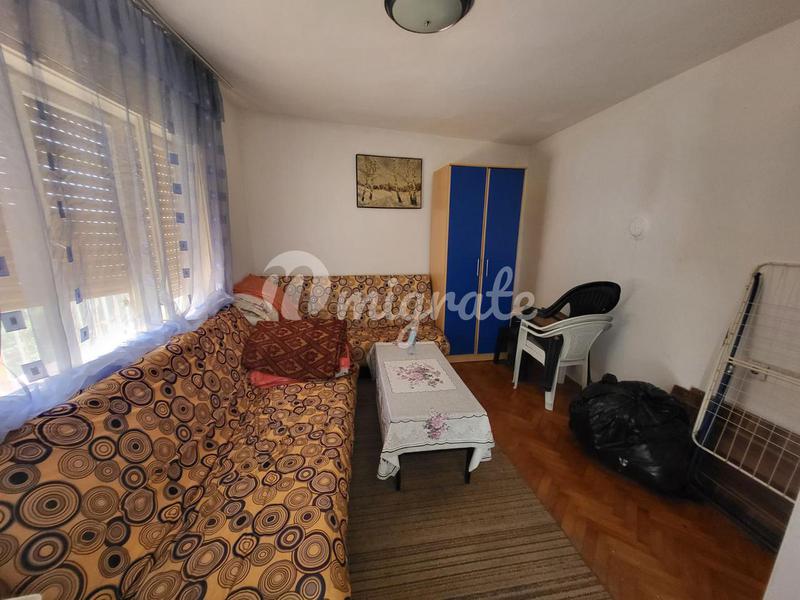 Продается дом в Будве с прекрасным видом на море и город. Площадь дома 80 м2, а площадь участка, на котором он расположен, 150 м2. Планировка дома: Первый этаж: прихожая, гостиная, спальня, ванная ком