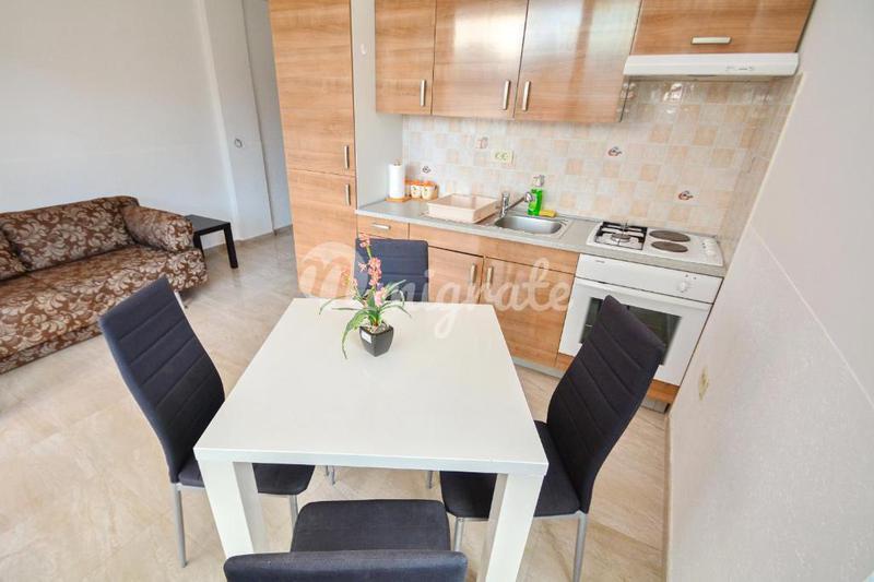 Дом в Сутоморе продается как многоквартирный дом, всего десять квартир. Площадь дома 409 м2 на участке 500 м2, 900 м от моря. На первом этаже дома находится рецепция, две студии и две однокомнатные кв