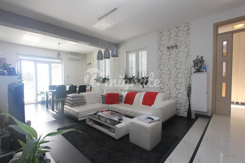 Дом с двумя квартирами в Сушне с открытым видом на море. Дом построен по принципу таунхауса, из которых обе квартиры имеют собственный гараж, из которого вы входите в квартиру. Дом роскошно обставлен,