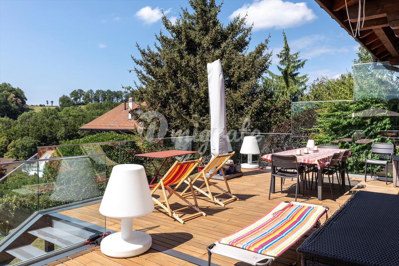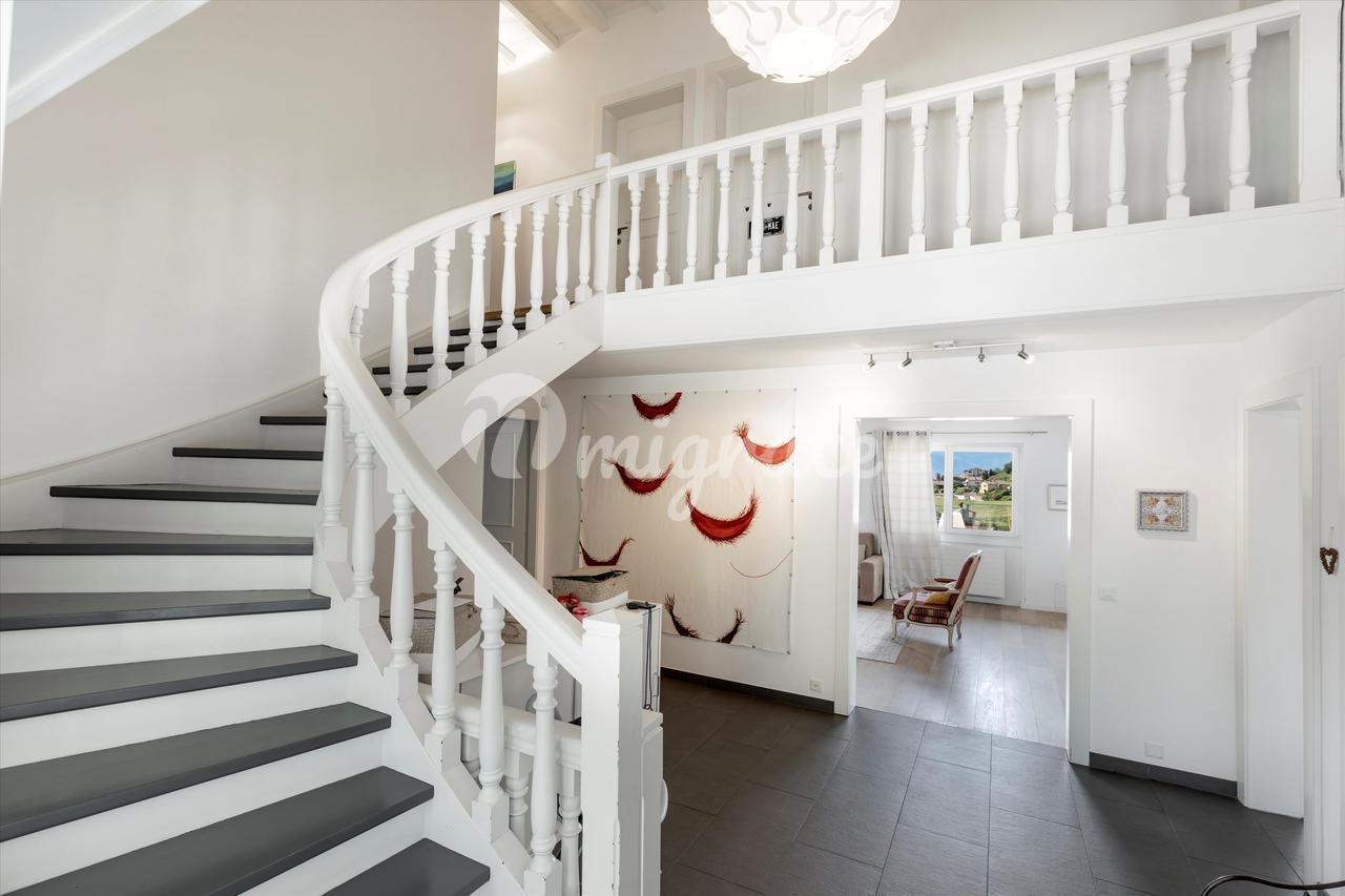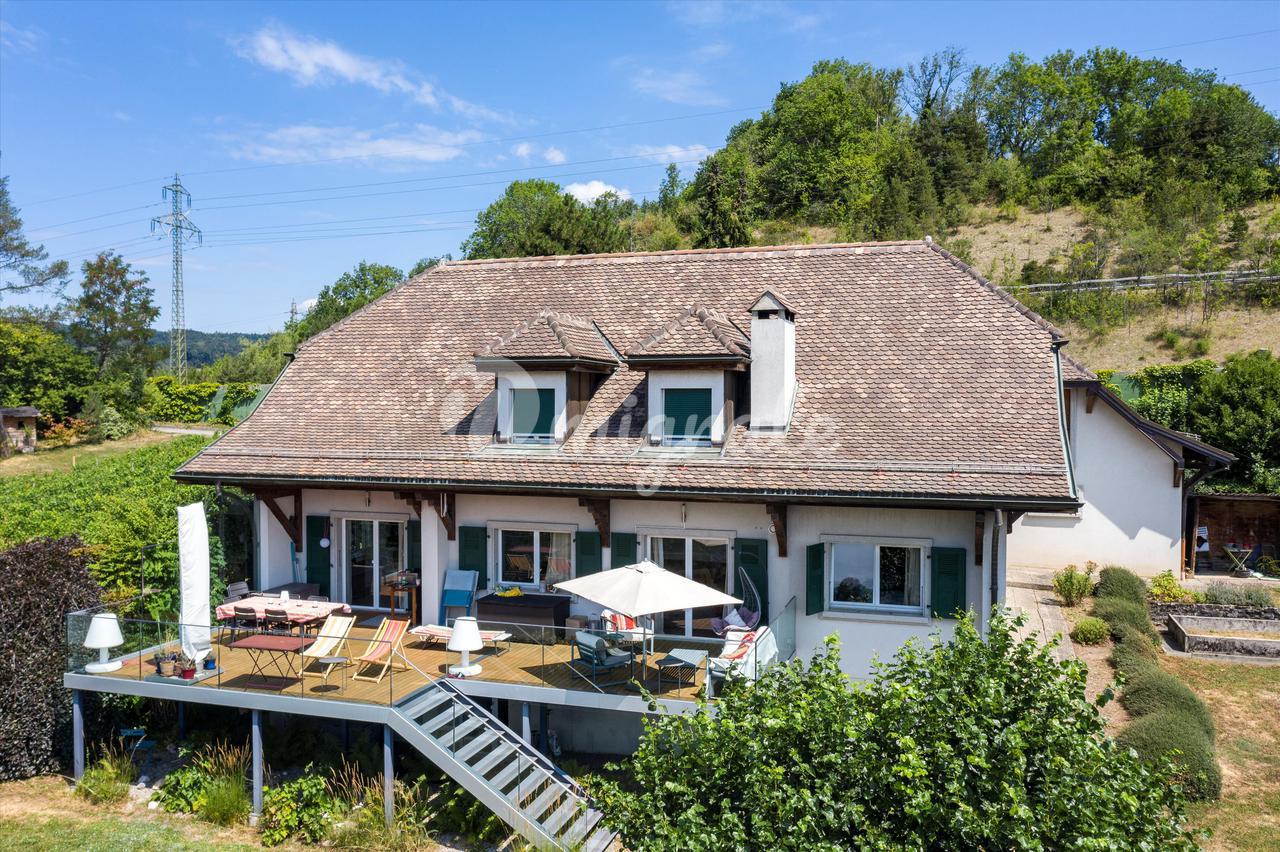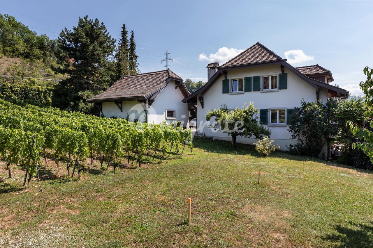 Расположенный на двух этажах с подвалом, дом включает в себя две гостиные, одна из которых представляет собой большую комнату открытой планировки с обеденной зоной и выходом на просторную террасу, кухню, четыре спальни на втором этаже и главную спальню-люкс на первом этаже. Он расположен на большом лесистом участке площадью 2’178 кв.м, откуда открывается прекрасный вид на озеро и горы. Есть возможность построить бассейн на территории, а также разбить огород.
