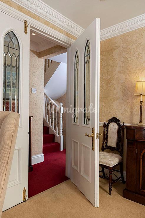 Недвижимость состоит из трех этажей с прихожей, столовой, подсобным помещением, гардеробной и кухней, комнатой для завтрака с дверями во двор, все на первом этаже. Удивительно светлая гостиная с камином и прекрасным видом на Хай-стрит находится на первом этаже вместе с главной спальней со встроенными шкафами и ванной комнатой с душем.