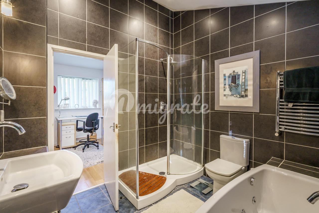 Просторный и светлый отдельно стоящий семейный дом с просторными комнатами, парковкой вне улицы и четырьмя спальнями с двуспальными кроватями.
