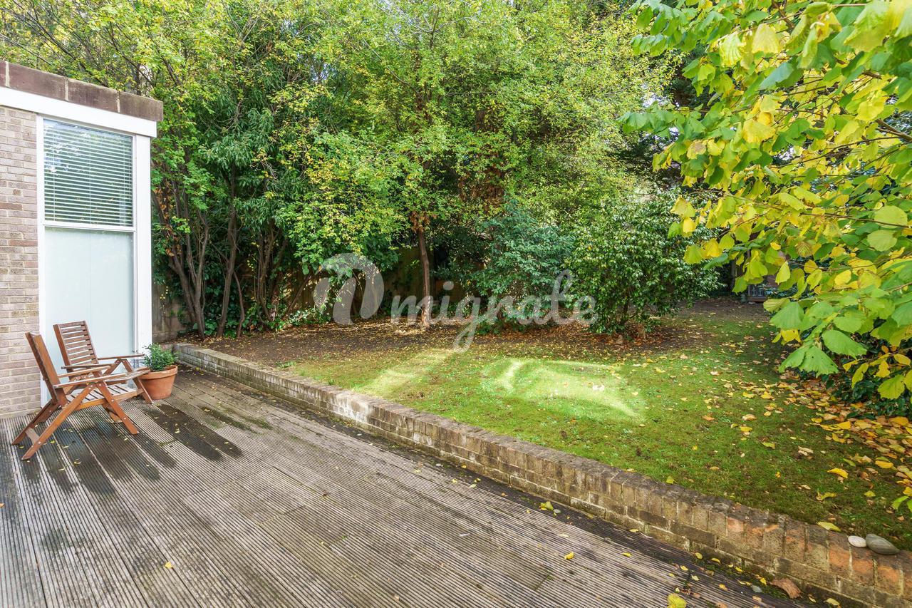 Сзади находится зрелый сад, выходящий окнами на юг, а спереди - парковка вне улицы.