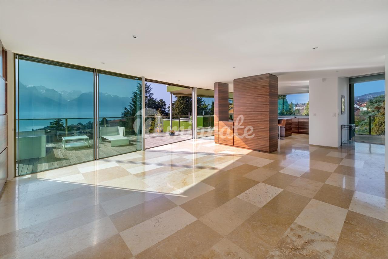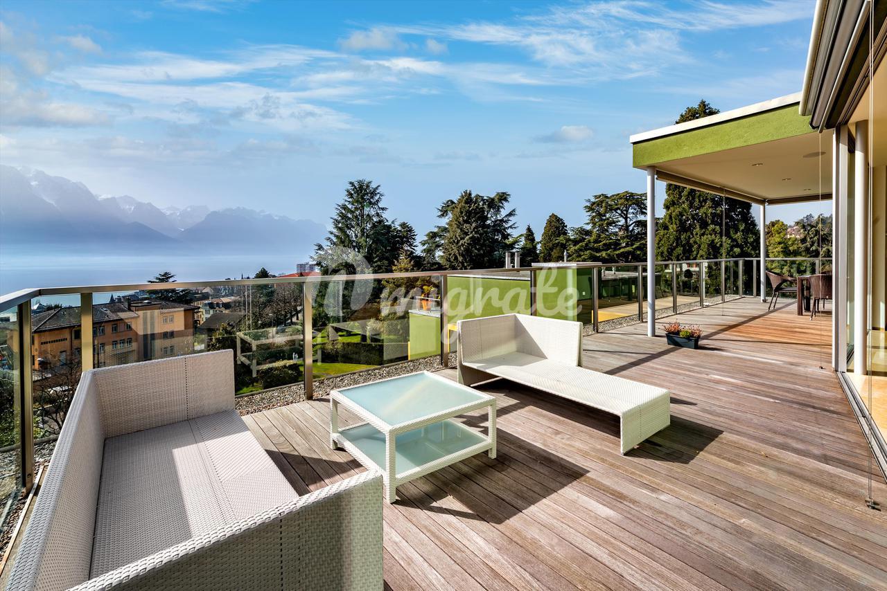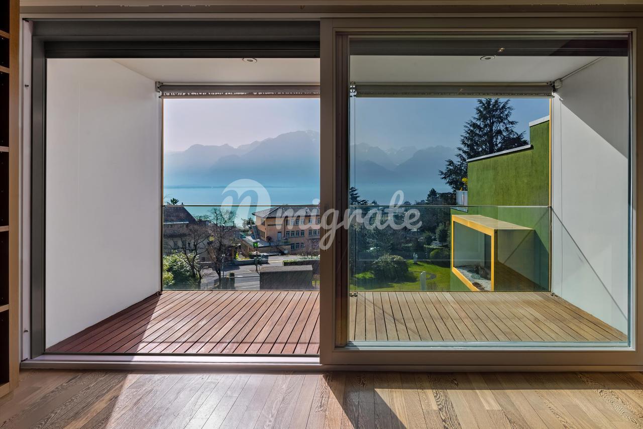 Окруженная природой, эта великолепная двухуровневая квартира расположена в небольшом здании в Кларансе с современной архитектурой и исключительным видом на озеро и Альпы.