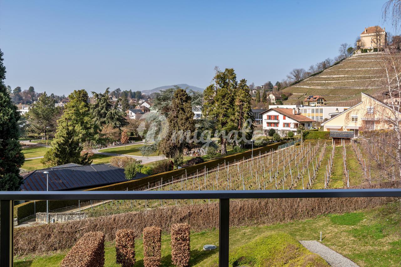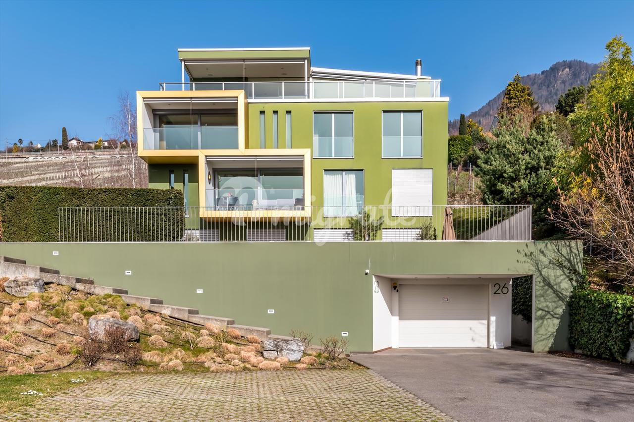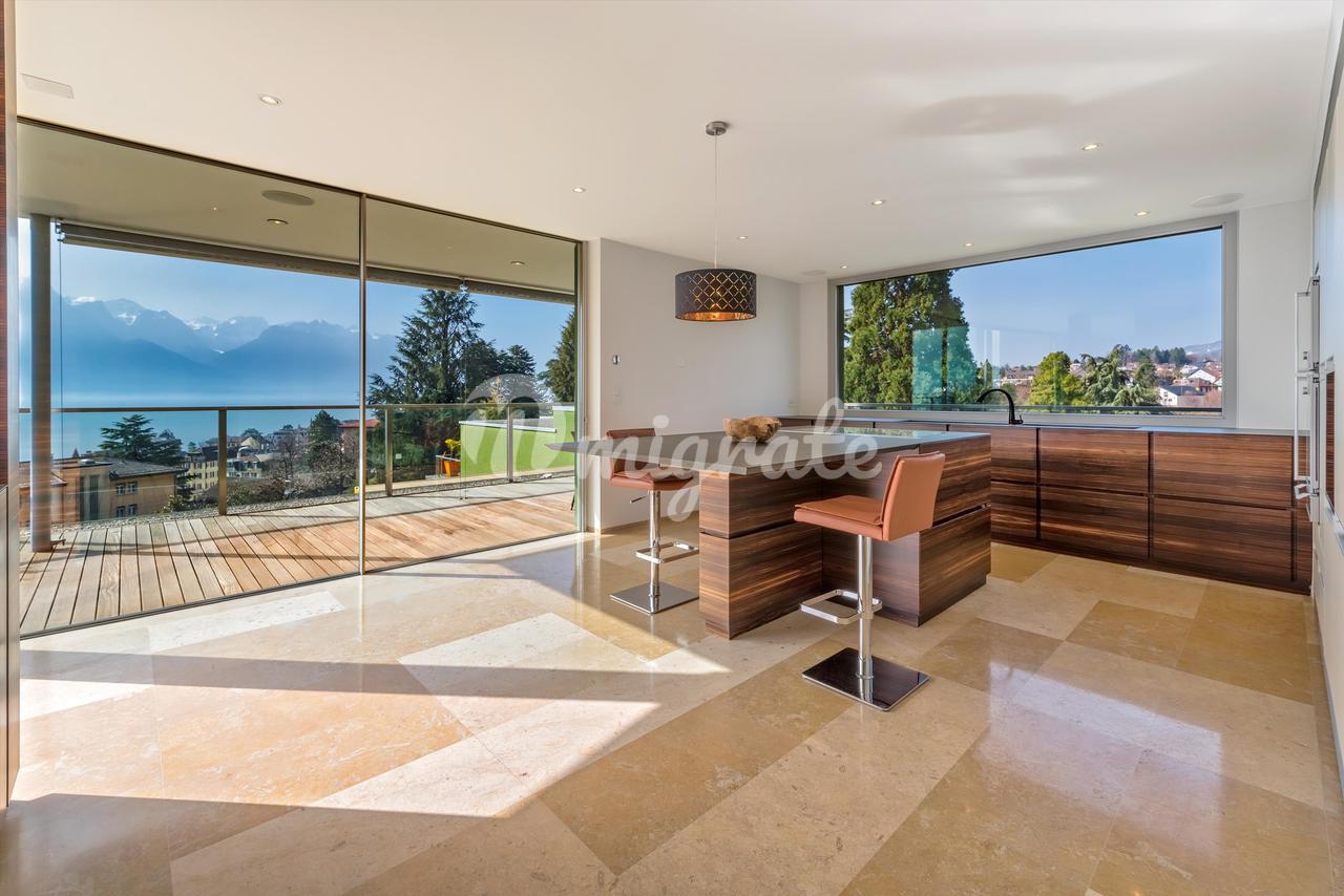 Окруженная природой, эта великолепная двухуровневая квартира расположена в небольшом здании в Кларансе с современной архитектурой и исключительным видом на озеро и Альпы.