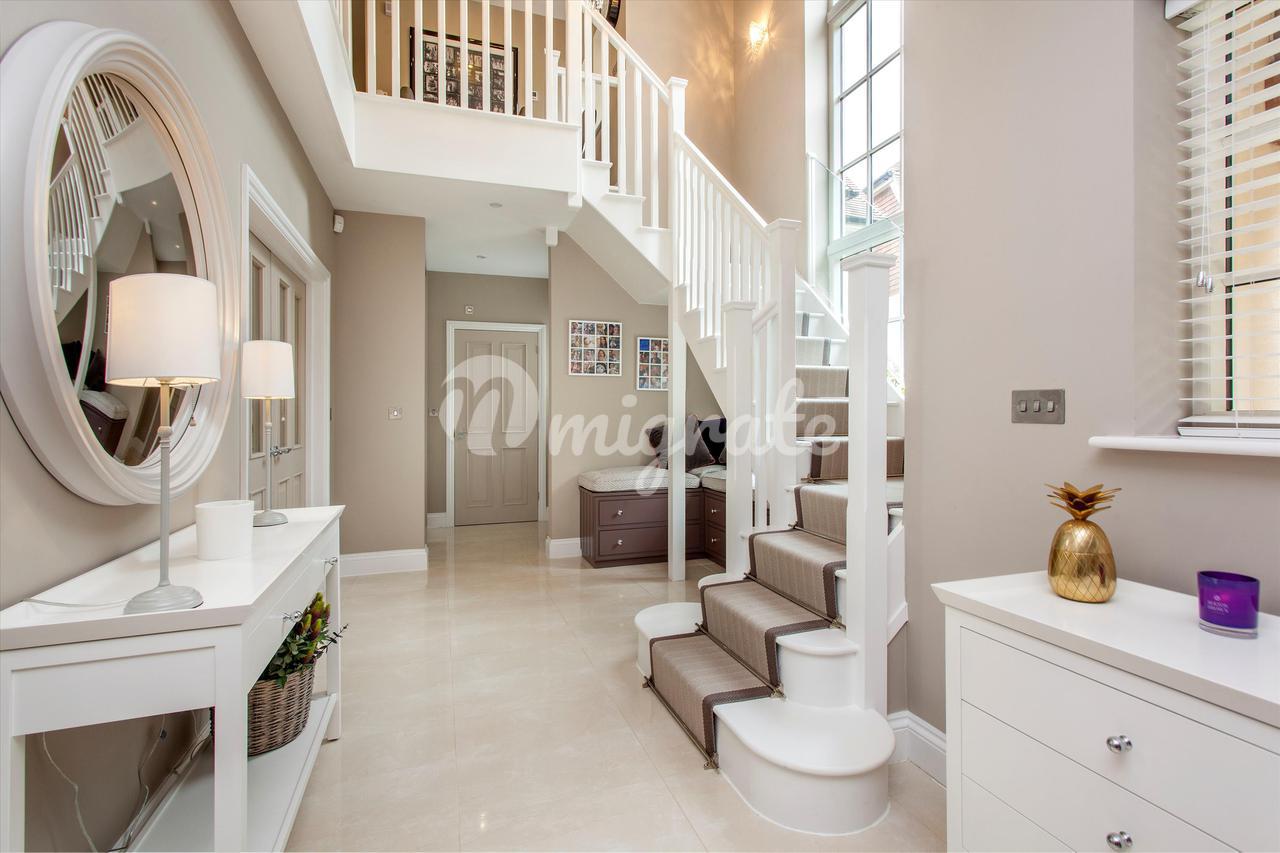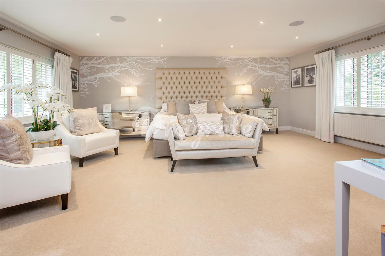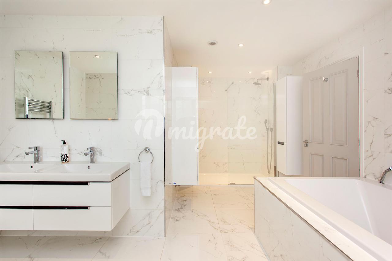 Впечатляющая лестница ведет на второй этаж с просторной площадкой, обеспечивающей доступ к пяти спальням и семейной ванной комнате. Основная спальня очень хорошо оборудована и может похвастаться большой спальней и превосходной ванной комнатой, а также отдельной полностью оборудованной гардеробной. Во втором люксе есть душевая и отдельная гардеробная. В третьей и четвертой спальнях есть душевые комнаты, а также гардеробная и встроенные шкафы соответственно. Пятая спальня с семейной ванной напротив завершает размещение на первом этаже. На втором этаже есть еще две спальни вместе с отдельной душевой комнатой.
