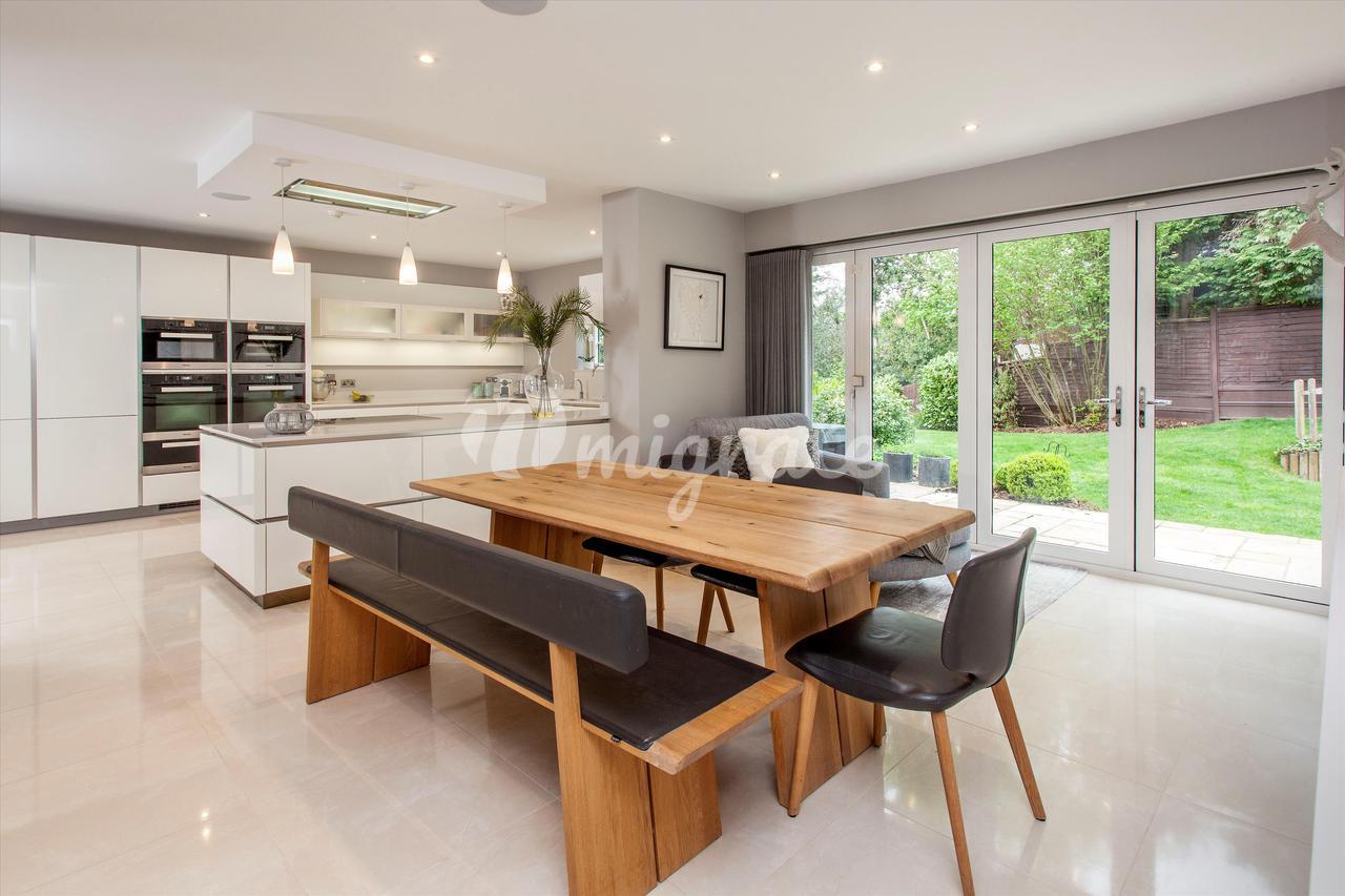 Расположенный в Clenches Farm Lane, который является частным тупиком, обслуживающим всего несколько домов в поместье Kippington Estate, отель представляет собой великолепную резиденцию, расположенную на участке площадью 0,3 акра. Этот исключительный дом был спроектирован с превосходными техническими характеристиками и вниманием к деталям и предлагает просторные помещения, расположенные на трех этажах. Первый этаж был спроектирован таким образом, чтобы максимизировать жилое и развлекательное пространство с отличным выбором приемных, а также прекрасной кухней / столовой. Коридор тройной высоты с пятиметровым окном над лестницей, обеспечивающим обилие естественного света. Трехсторонняя гостиная имеет щедрые пропорции и извлекает выгоду из камина в стиле inglenook с печью. К этому примыкает кабинет, в котором на заказ установлены шкафы от пола до потолка и стеллажи. Обе комнаты имеют прямой выход в сад через двойные двери.