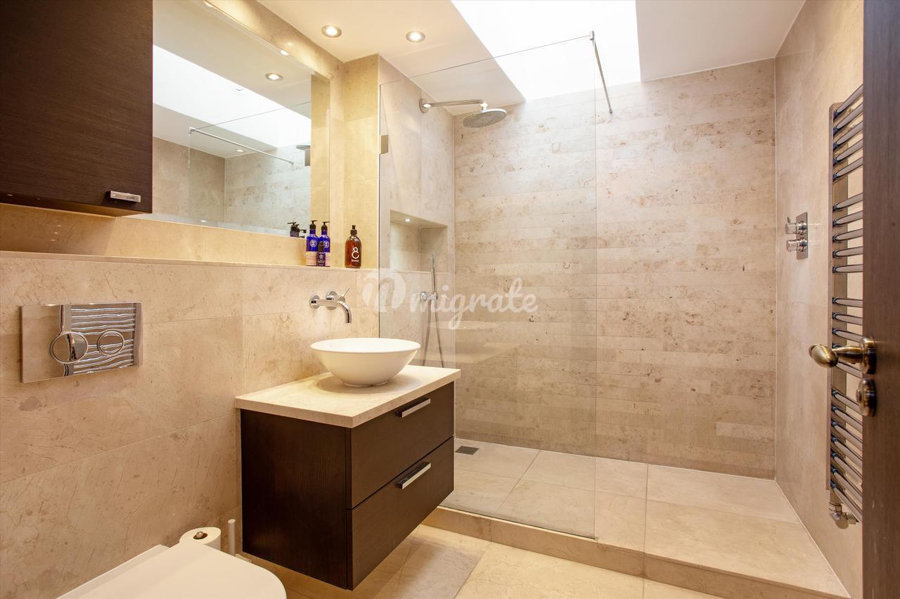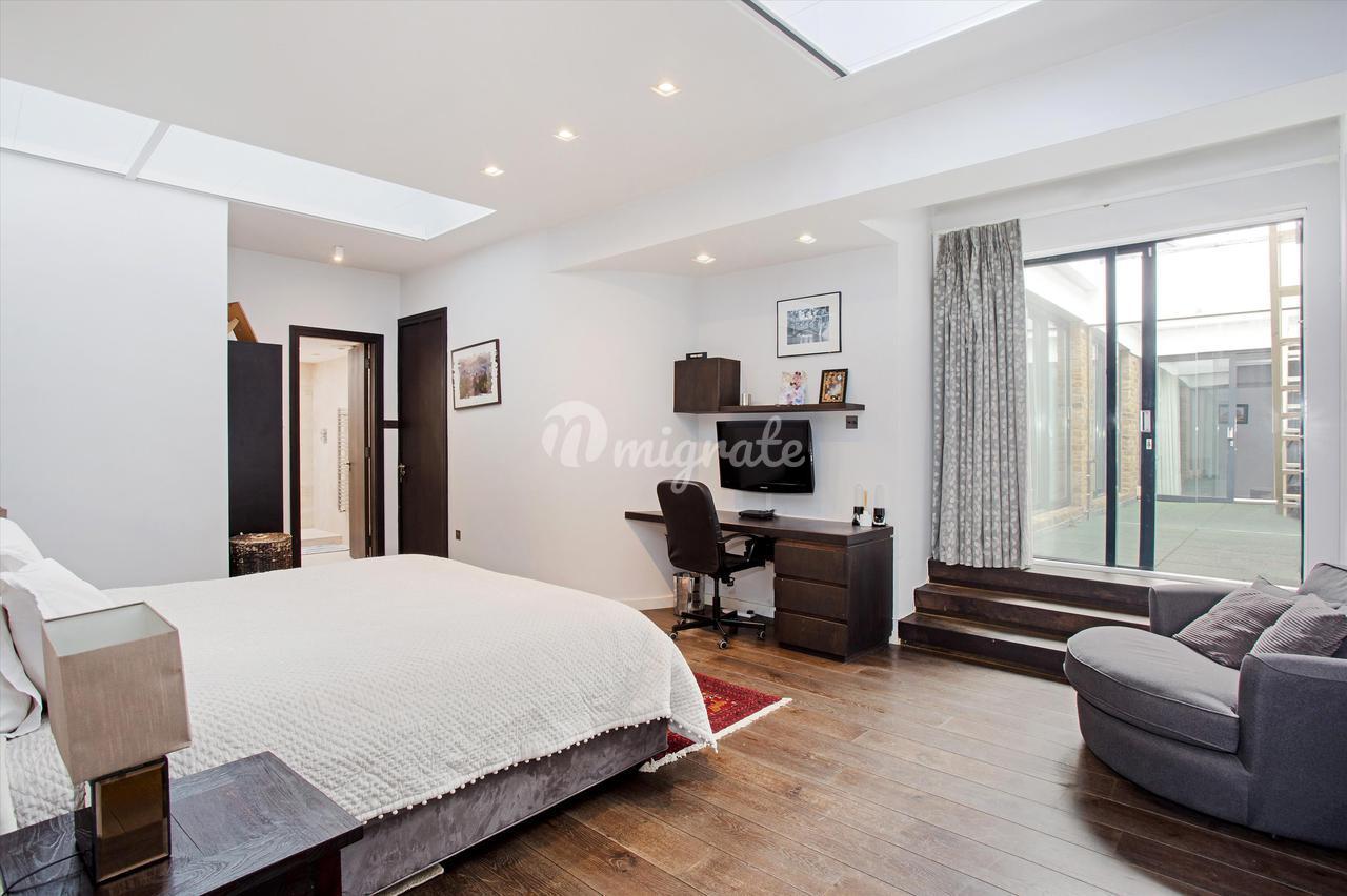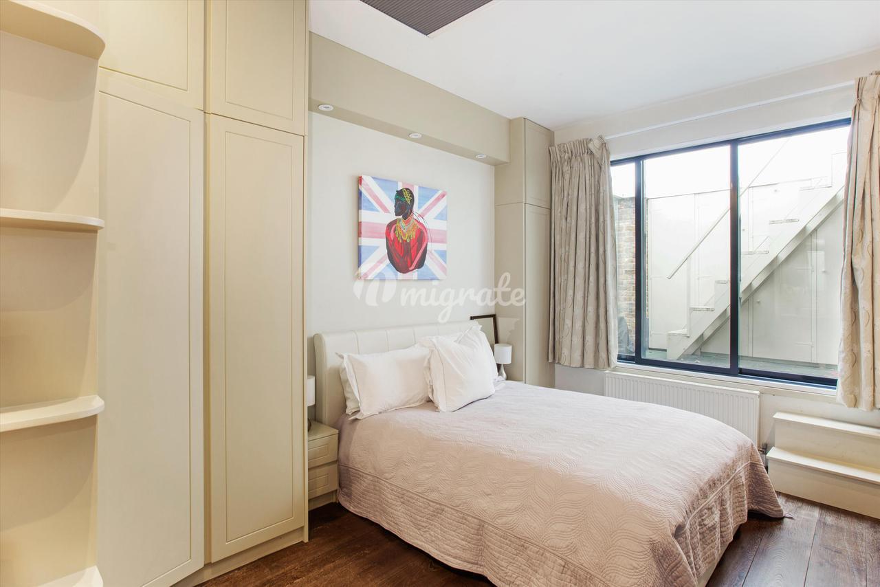 На верхнем (пятом) этаже находятся две просторные спальни с двуспальными кроватями, в которых есть несколько мансардных окон, пропускающих много естественного света, и встроенные системы хранения вещей. Главная спальня может похвастаться гардеробной и собственной душевой комнатой, а вторая спальня имеет собственную ванную комнату, и обе спальни имеют выход на частную террасу во внутреннем дворе. С террасы есть лестница, ведущая на крышу, и, пока она не убрана, из этого помещения открывается захватывающий панорамный вид на Лондон, включая некоторые из самых знаковых достопримечательностей. Наконец, в стоимость продажи входит одно охраняемое парковочное место, расположенное в соседнем здании.