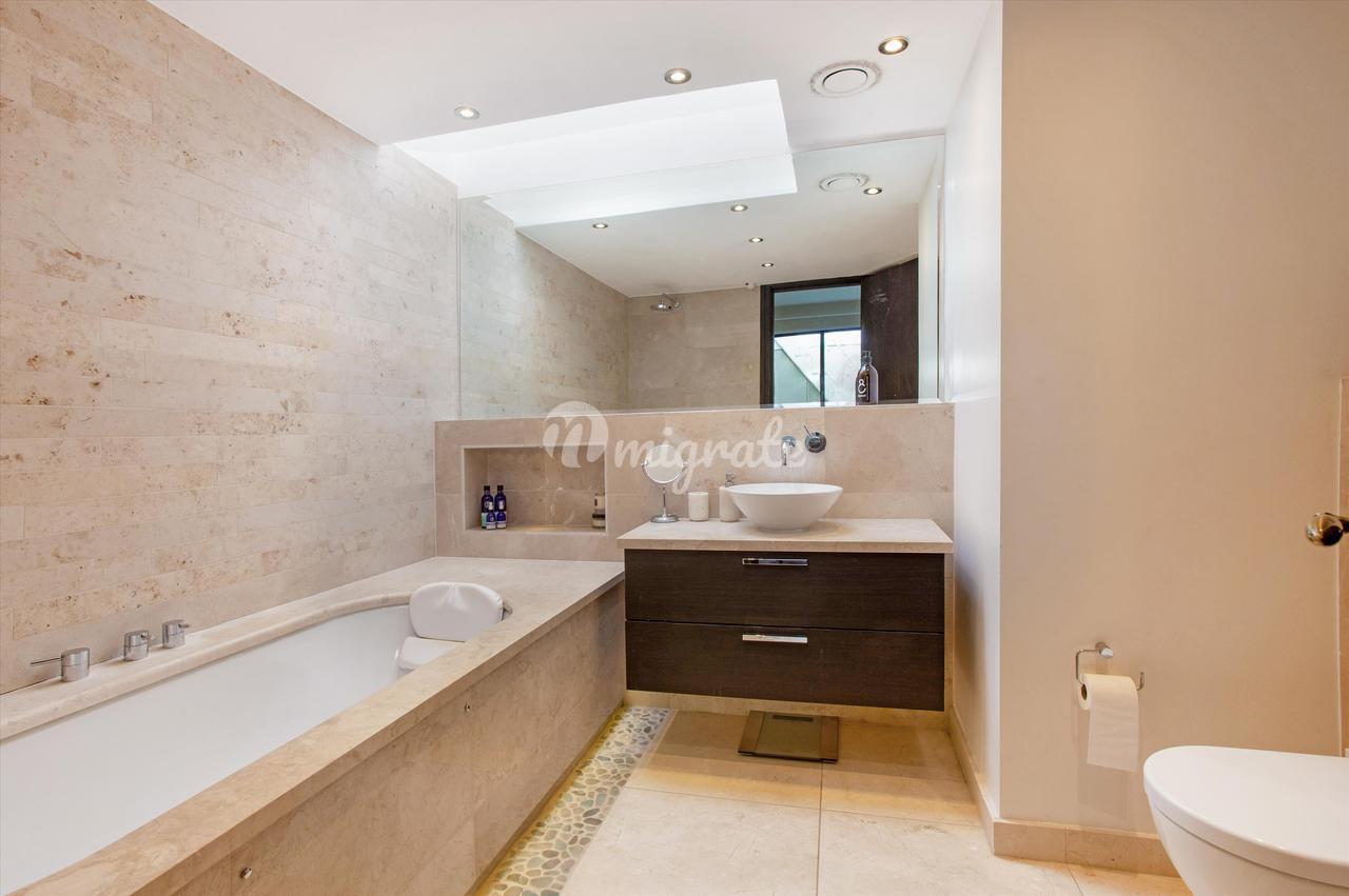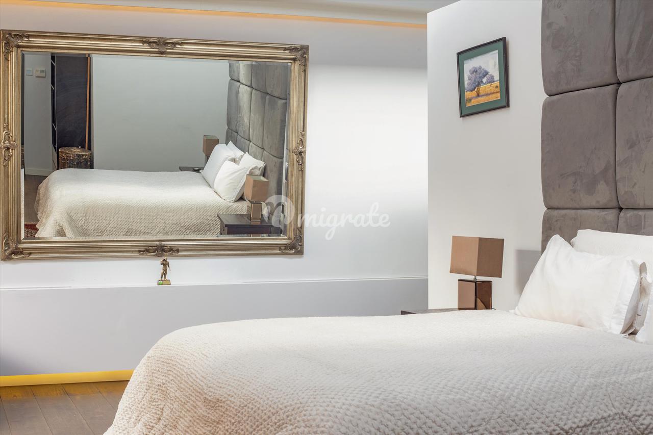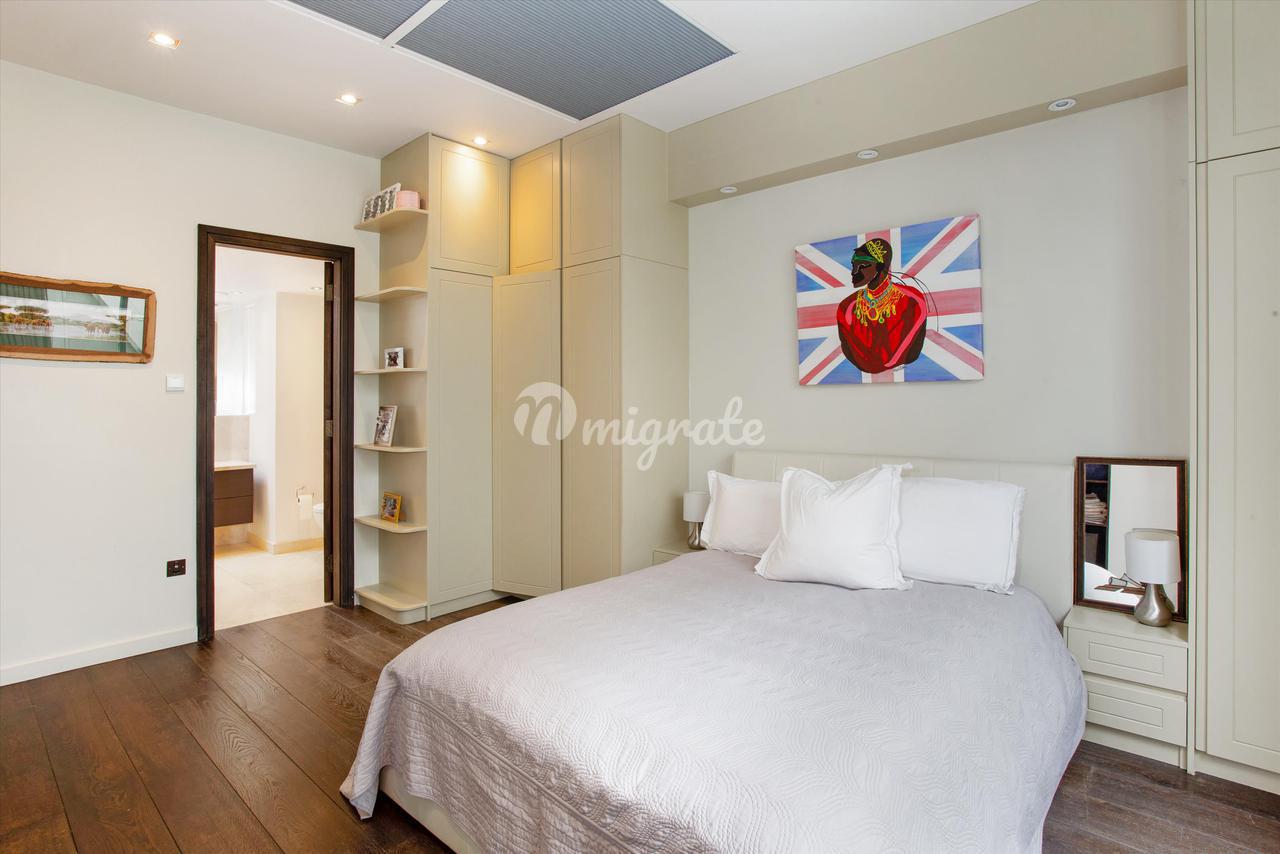 На верхнем (пятом) этаже находятся две просторные спальни с двуспальными кроватями, в которых есть несколько мансардных окон, пропускающих много естественного света, и встроенные системы хранения вещей. Главная спальня может похвастаться гардеробной и собственной душевой комнатой, а вторая спальня имеет собственную ванную комнату, и обе спальни имеют выход на частную террасу во внутреннем дворе. С террасы есть лестница, ведущая на крышу, и, пока она не убрана, из этого помещения открывается захватывающий панорамный вид на Лондон, включая некоторые из самых знаковых достопримечательностей. Наконец, в стоимость продажи входит одно охраняемое парковочное место, расположенное в соседнем здании.
