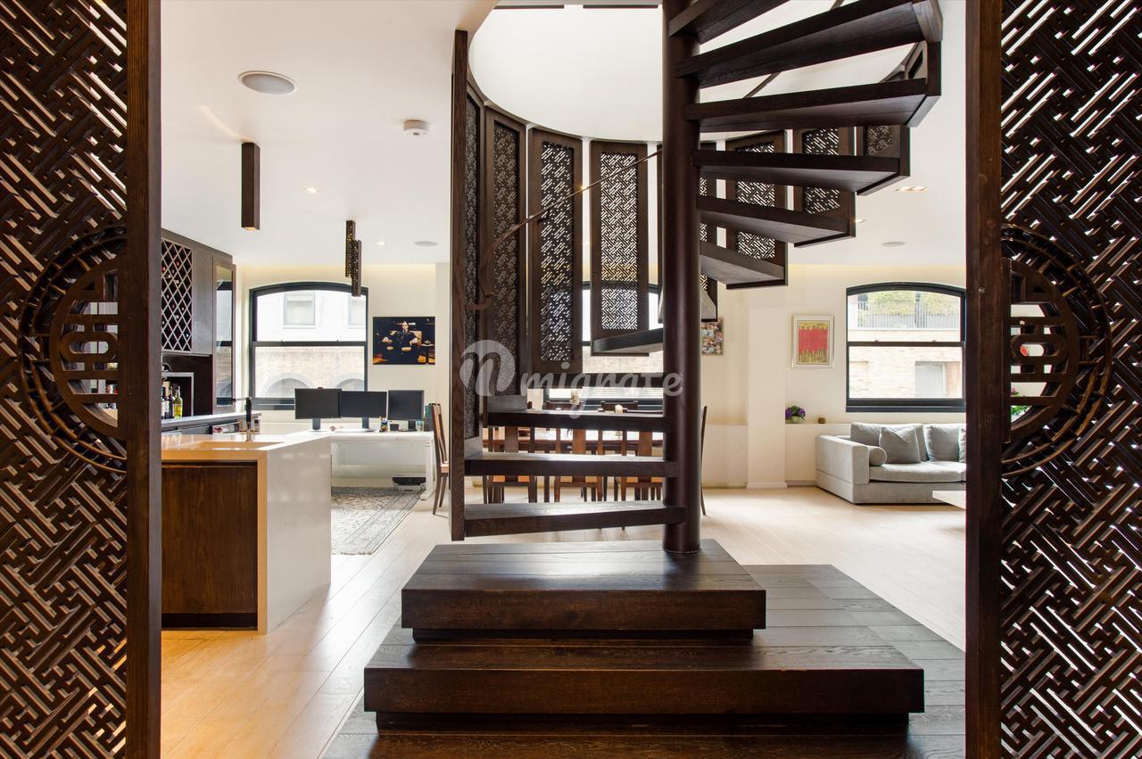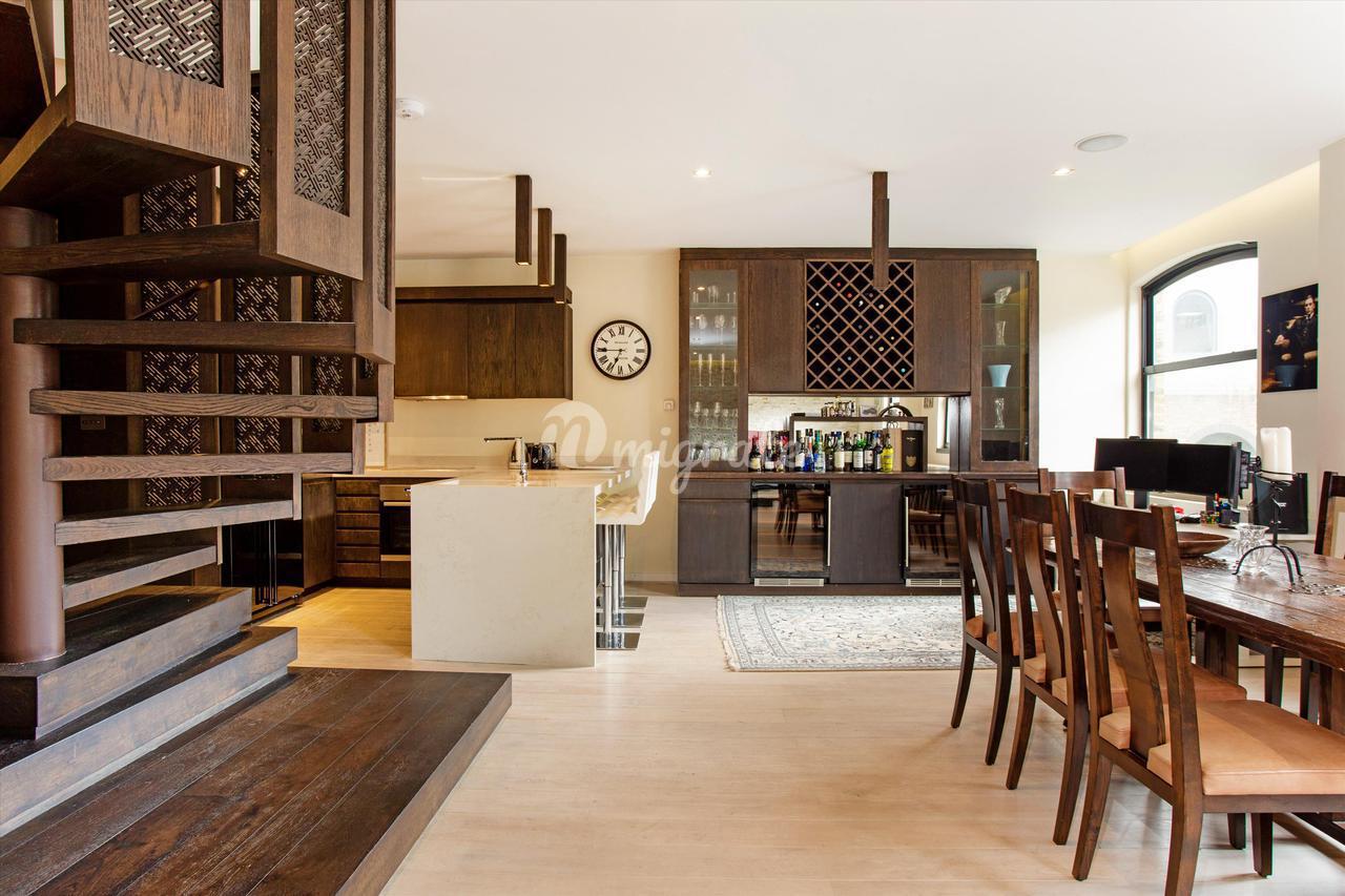 Отель Pickfords Wharf расположен в самом центре Бэнксайда, всего в нескольких шагах от рынка Боро. Эти полностью отремонтированные двухуровневые апартаменты в пентхаусе с двумя спальнями и тремя ванными комнатами, выполненные на заказ, имеют площадь около 172,3 кв. м. (1855 кв. футов).