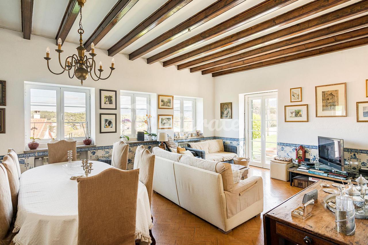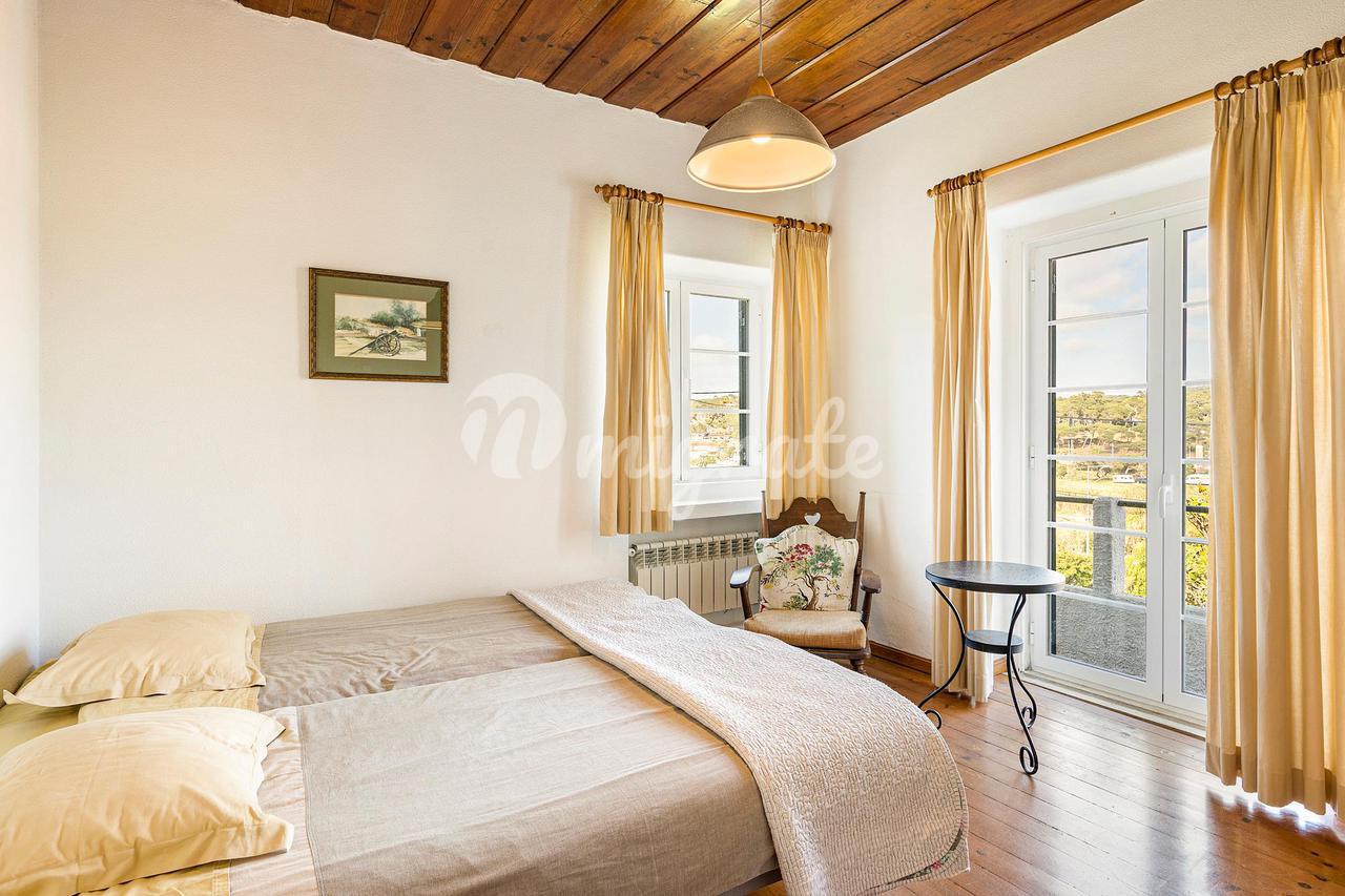 Недвижимость с видом на Серра-де-Синтра расположена на земельном участке площадью 4604 кв.м и общей площадью застройки 577 кв.м. Это свойство состоит из главного дома и нескольких пристроек, окруженных садом и огородом. Главный дом включает в себя гостиную, ведущую в столовую, кухню и кладовую. В нем также есть гостевая ванная комната, гардеробная и спальня с ванной комнатой. На верхнем этаже расположены четыре люкса, четыре спальни, две ванные комнаты и гардеробная.