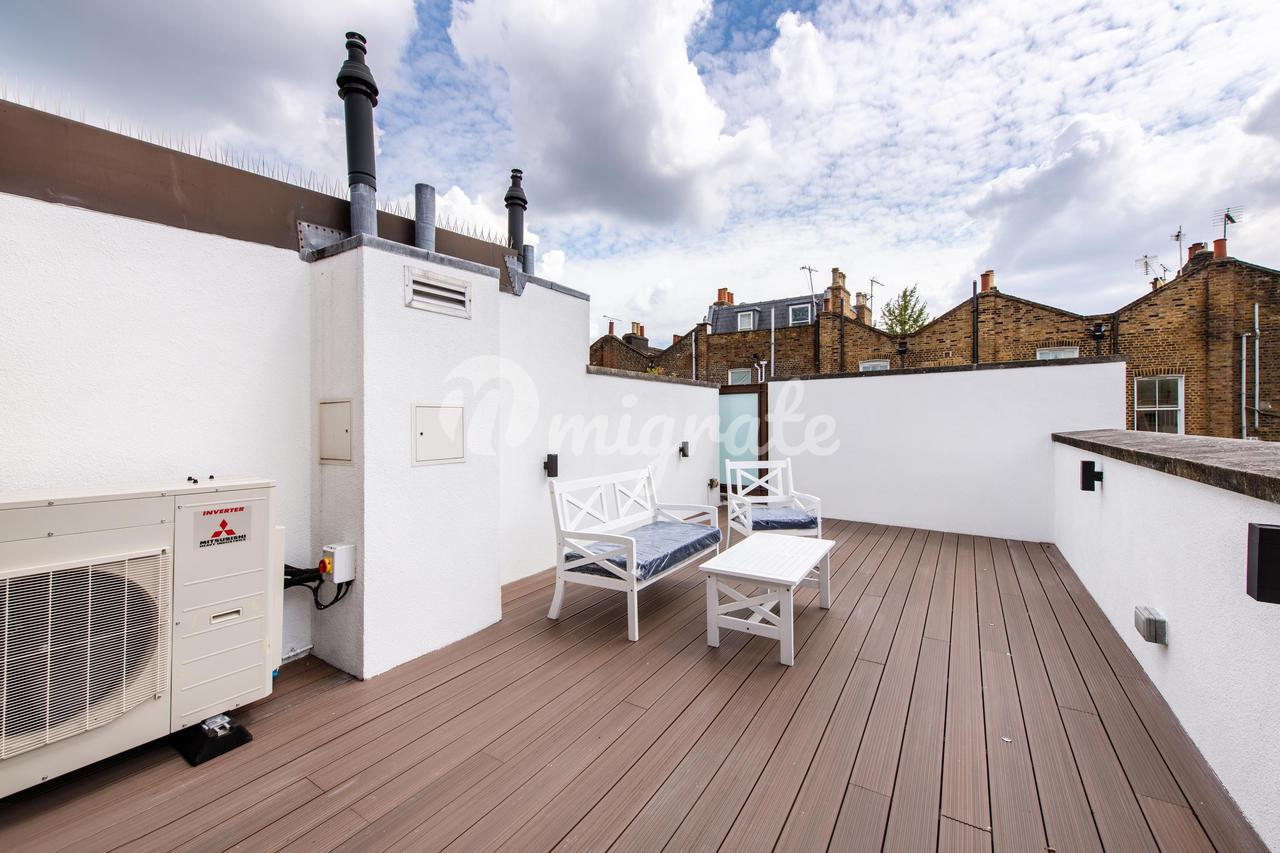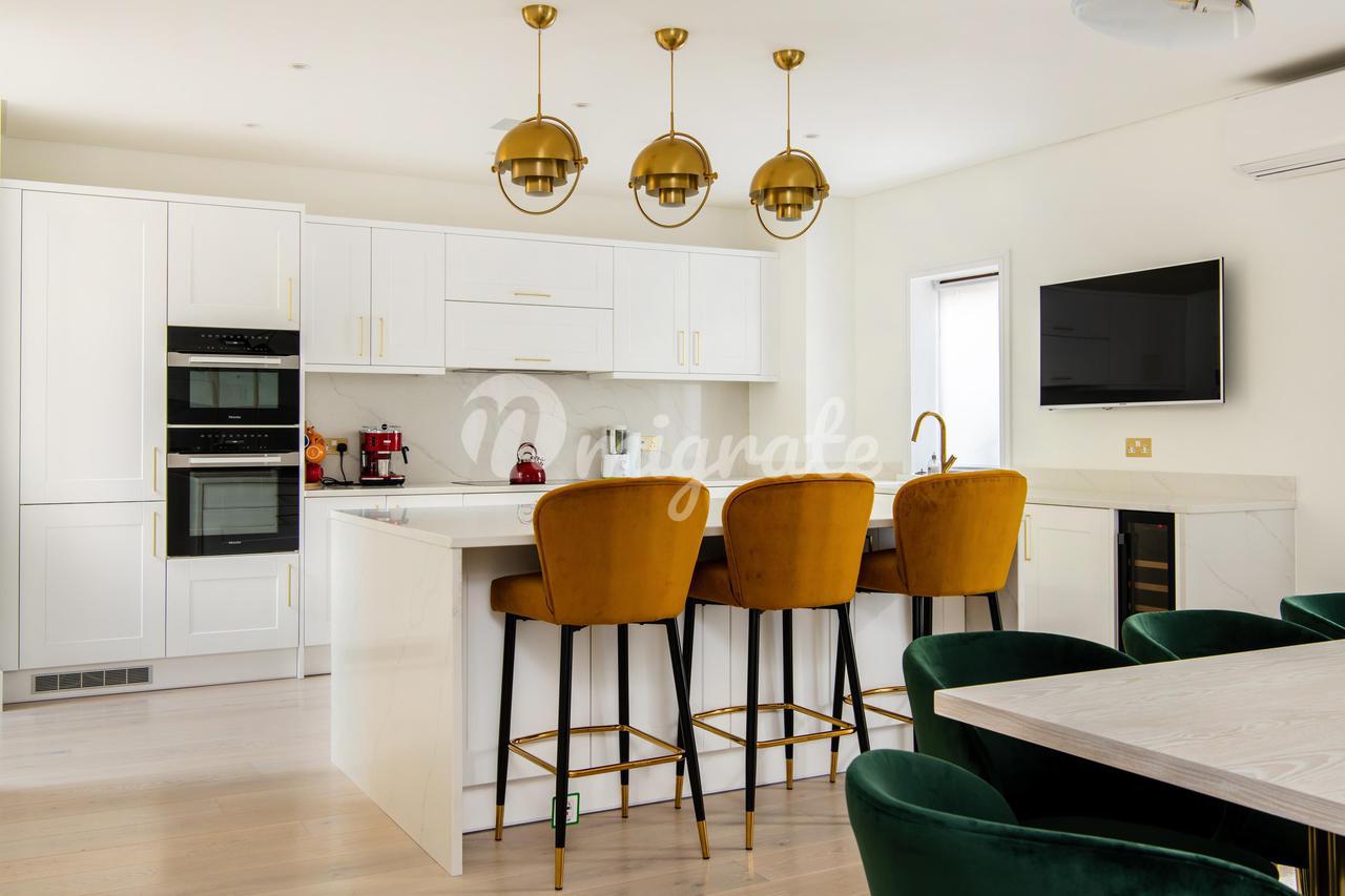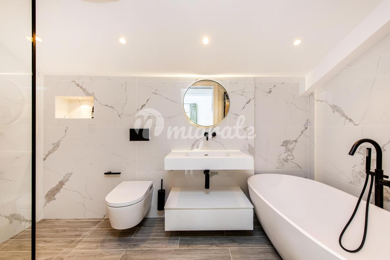 Дом предлагает четыре спальни очень хорошего размера, три ванные комнаты, а также отдельную гостиную, кухню/столовую, а также гараж на две машины и подсобное помещение. При входе в дом есть частный двор в дополнение к террасе на крыше на втором этаже. На ремонт не жалели средств, и дом может похвастаться всеми новейшими технологиями, а также кондиционером.