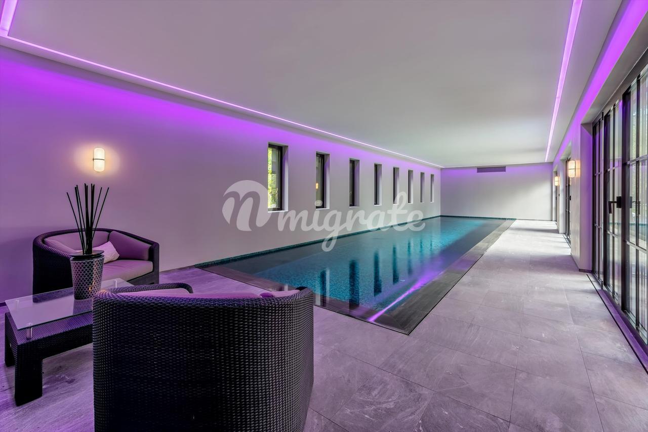 В собственности также есть частный сад, бассейн, терраса и гараж на 4 машины, а также множество открытых парковочных мест.