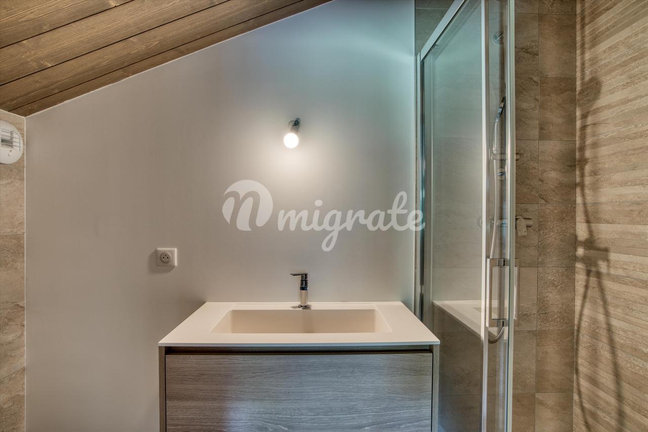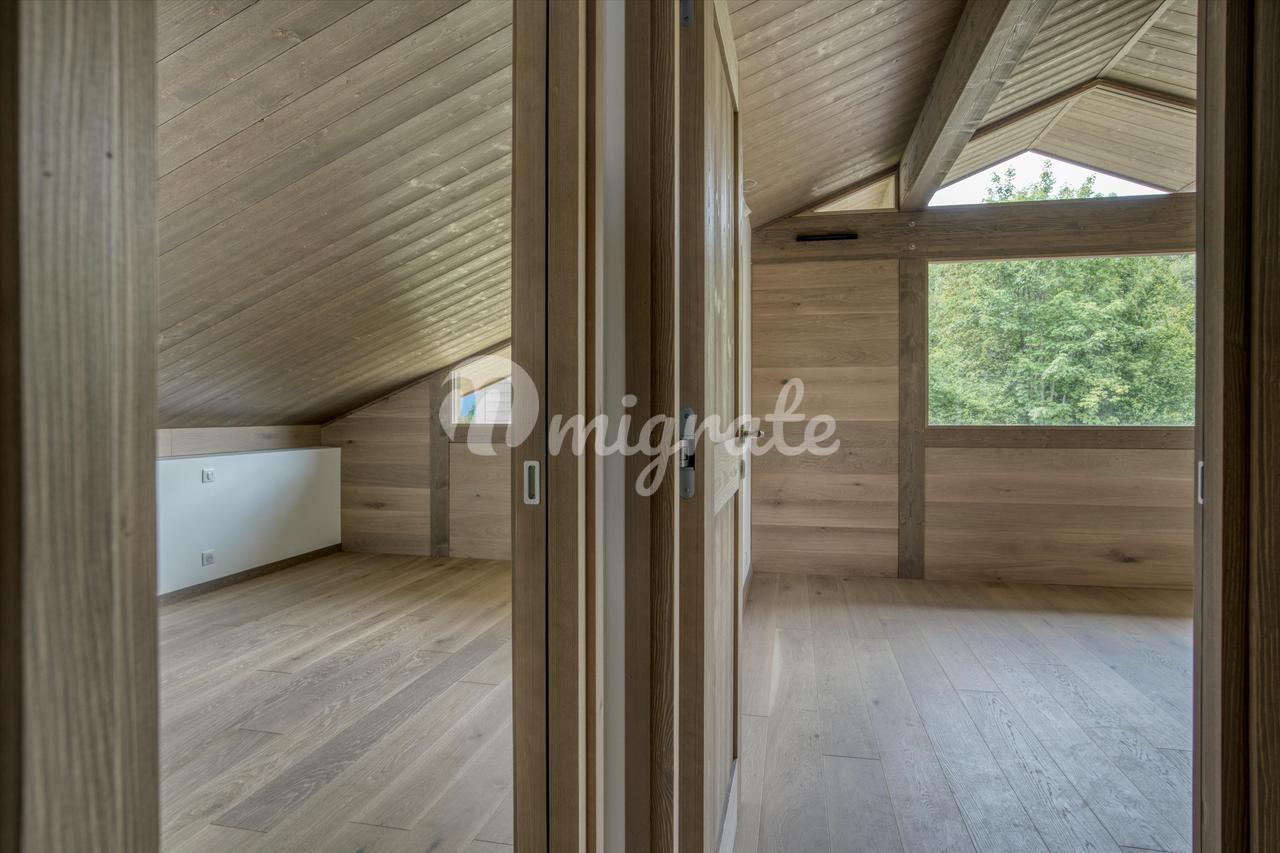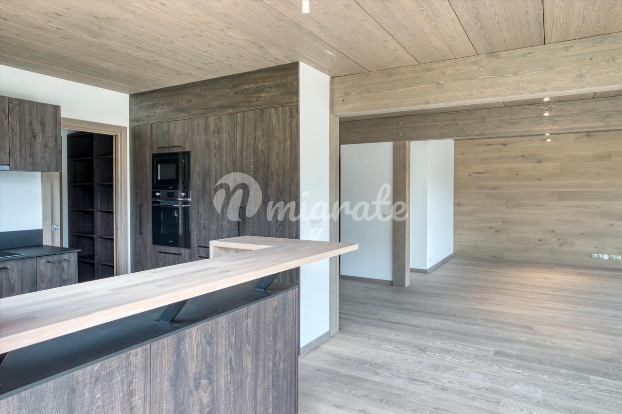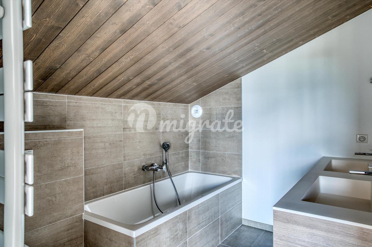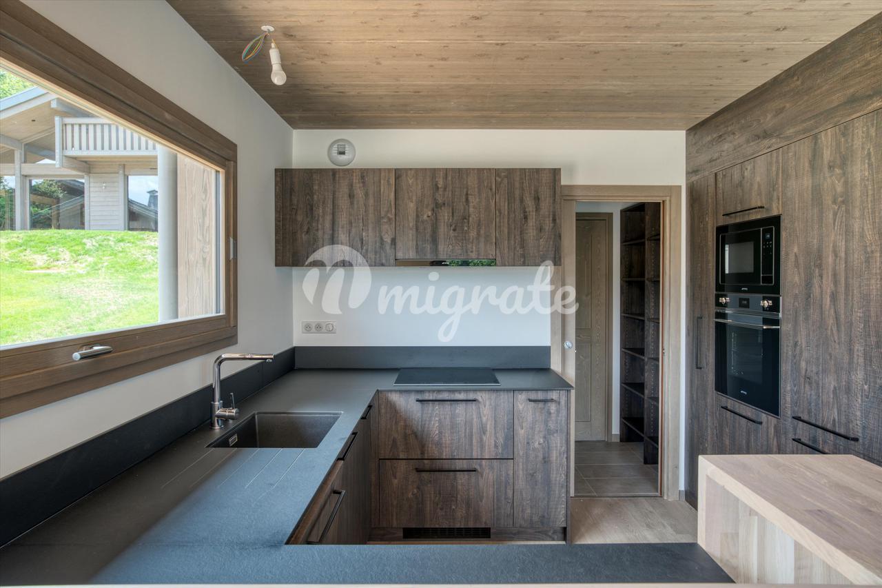 Недвижимость состоит из гостиной с обеденной зоной и оборудованной кухни открытого плана, выходящей на угловую террасу, кладовой, комнаты, подсобного помещения, гостевого туалета и гаража на две машины. Наверху есть главная спальня, гардеробная и балкон, а также еще 3 спальни, балкон и общая спальня с ванной комнатой. Возможность камина и сауны. Жилая площадь 175 м², полезная площадь 190 м², общая площадь земли ок. 0,16 га.
