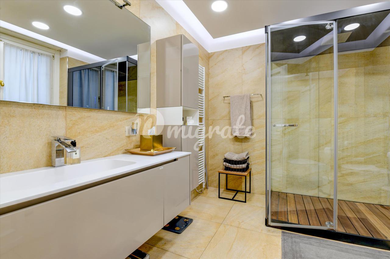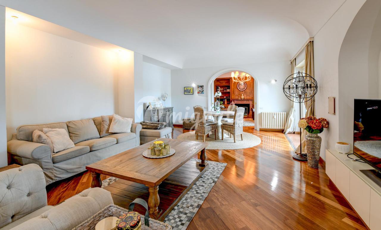 Квартира находится на одном уровне и включает в себя прихожую, большую двойную гостиную, кабинет с камином и две большие террасы с панорамным видом на первый бассейн озера, кухню, прихожую, три спальни с двумя террасами со стороны площади Рима с видом на Дуомо, три ванные комнаты, одна из которых примыкает к спальне, гардеробная и прачечная. Удобно расположен в нескольких минутах ходьбы от всех удобств, магазинов, ресторанов и театров.