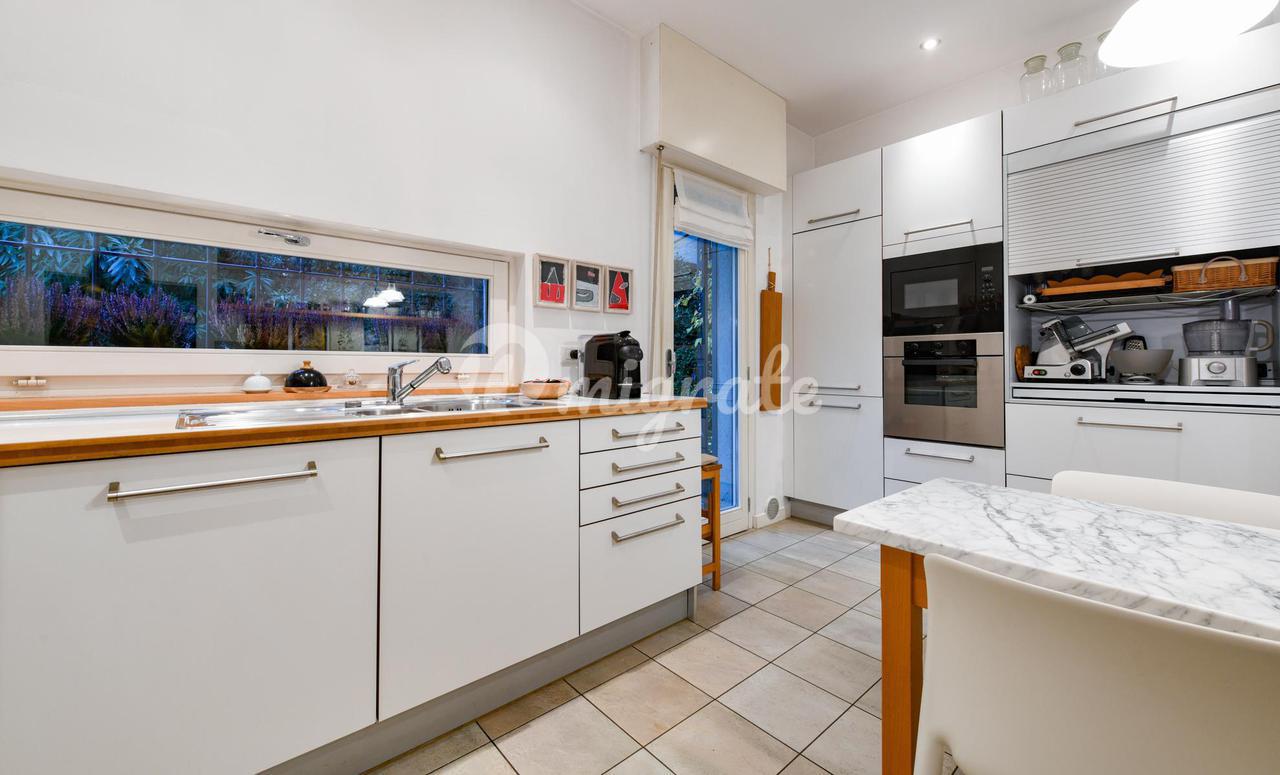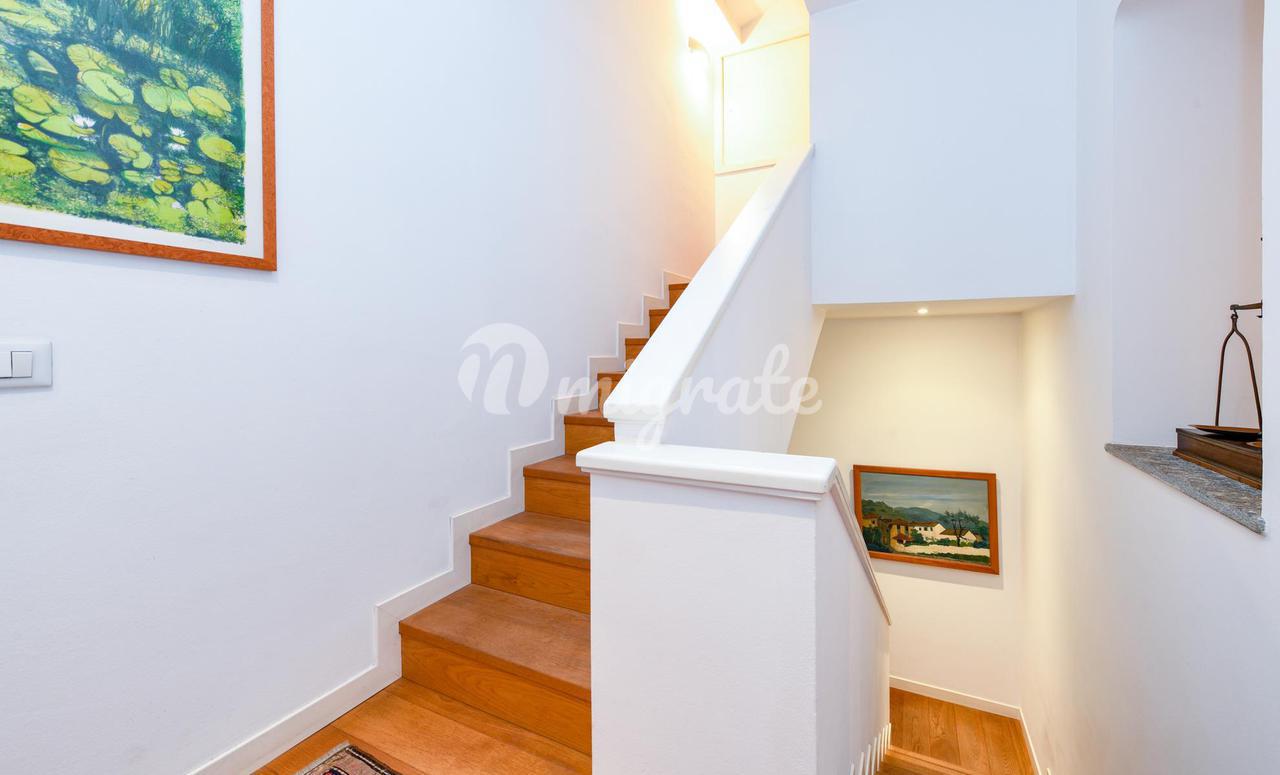 Первый этаж состоит из просторной прихожей, кухни с выходом на частную террасу, столовой, двойной гостиной с камином, ванной комнаты, прачечной и котельной. Второй этаж, куда можно подняться как по лестнице, так и на лифте, состоит из главной спальни с гардеробной, ванной комнатой и большой террасой, еще двух спален - каждая со своей ванной комнатой, балконом и кладовой.