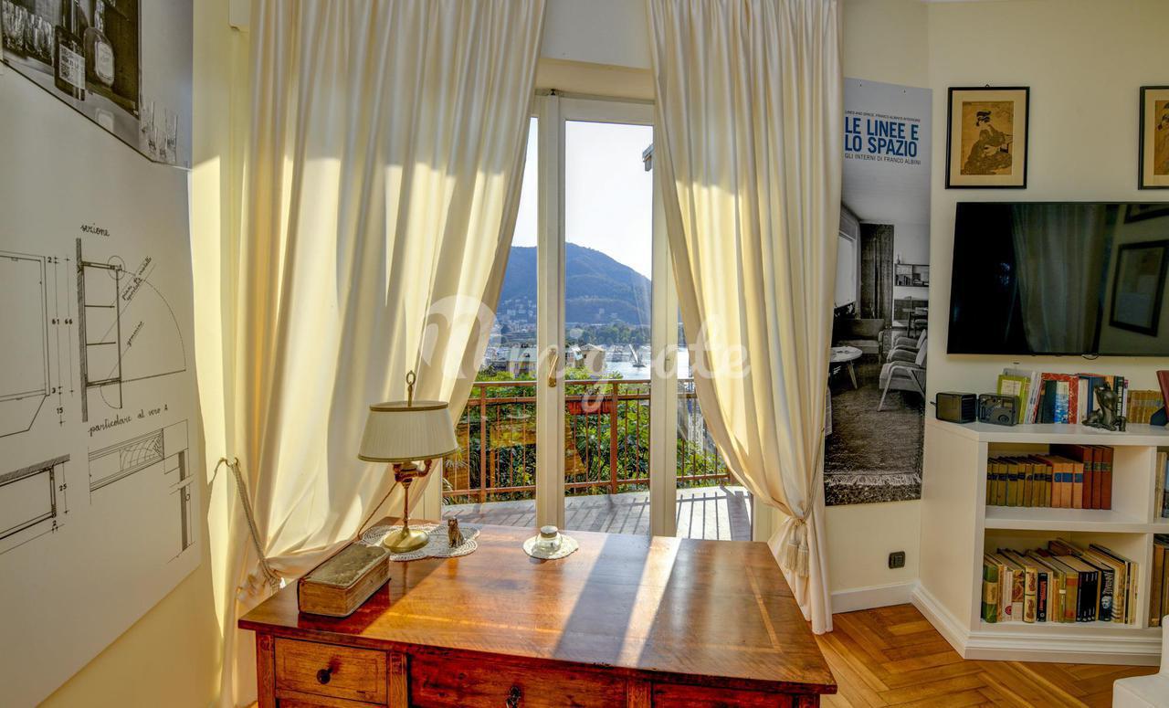 Квартира состоит из прихожей, двойной гостиной с обеденной зоной, кухни-столовой, прихожей, трех спален, кабинета и двух ванных комнат. Из всех комнат можно выйти на приятную широкую террасу с потрясающим видом на озеро и город.