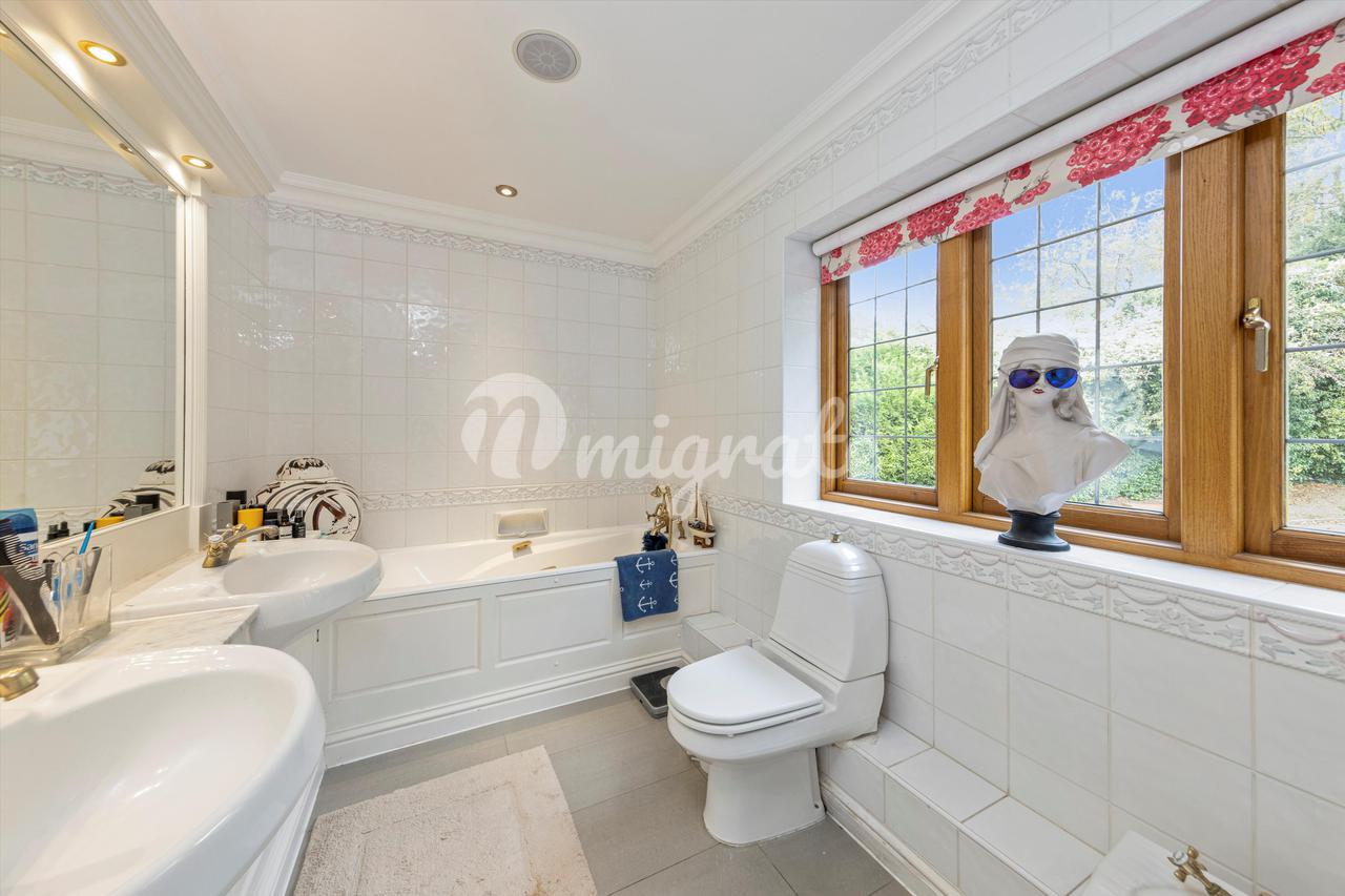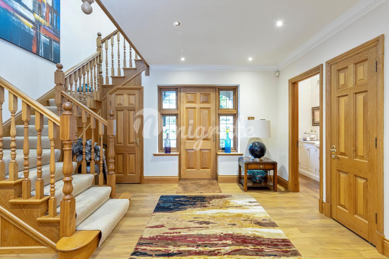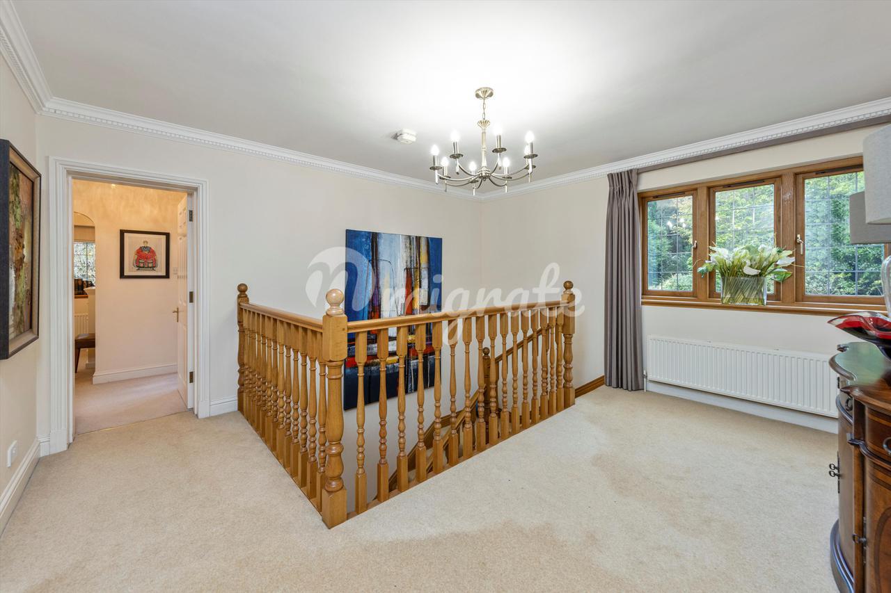 5 Compton Heights — впечатляющий семейный дом с элегантными фасадами из кирпича и черепицы под черепичной крышей. Комнаты имеют правильные пропорции, высокие потолки и прекрасно дополняются исключительными внутренними характеристиками. Имущество расположено в частной застройке из восьми внушительных семейных домов, доступ к которым осуществляется через подъездную дорогу с большими электрическими воротами. К дому ведет кирпичная дорожка, окаймленная газоном, взрослыми кустарниками и деревьями, сбоку от дома находится трехместный гараж. Входная дверь открывается во впечатляющий холл для приемов, из которого можно попасть во все помещения для приемов. Двойные двери из приемной и гостиной ведут в столовую, из которой открывается вид на задний сад с видом на прилегающие сельскохозяйственные угодья на юге и холмы Суррей. В гостиной тройной аспект, есть привлекательный открытый камин и двойные двери, ведущие на террасу, выходящую на южную сторону. Кухня/зал для завтрака хорошо оборудована красивыми деревянными элементами и гранитными рабочими поверхностями. Существует крытая дорожка с застекленными боковыми панелями, соединяющая кухню / комнату для завтрака с тройным гаражом. Кроме того, есть кабинет и гардеробная внизу.