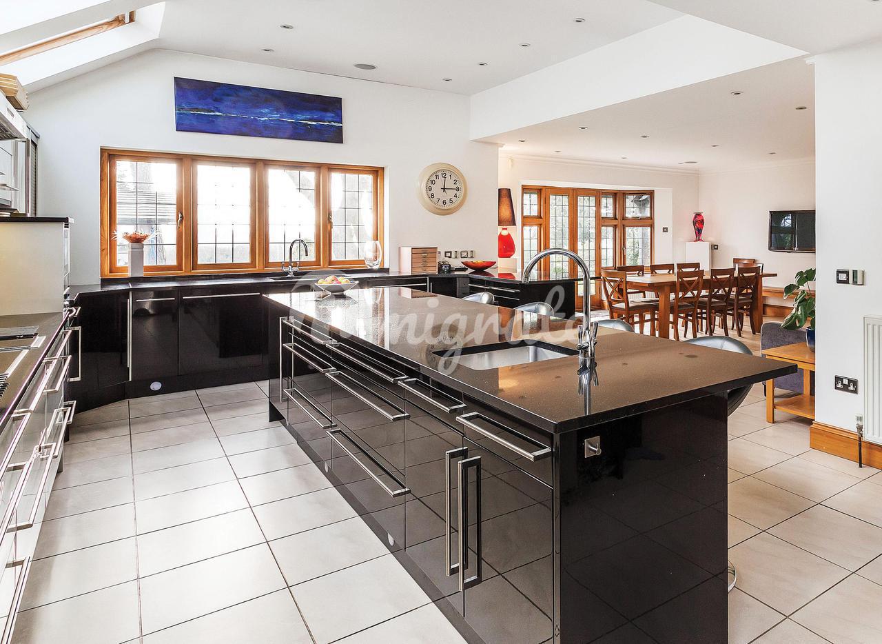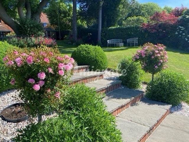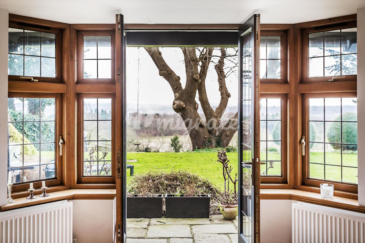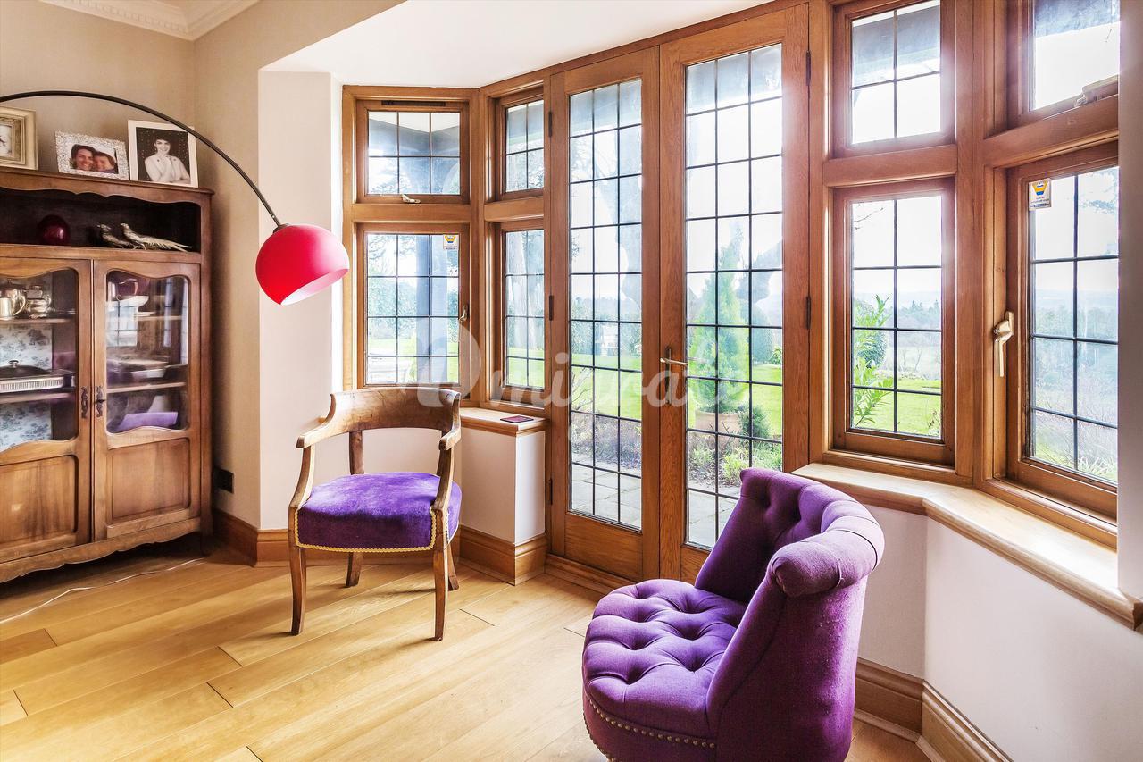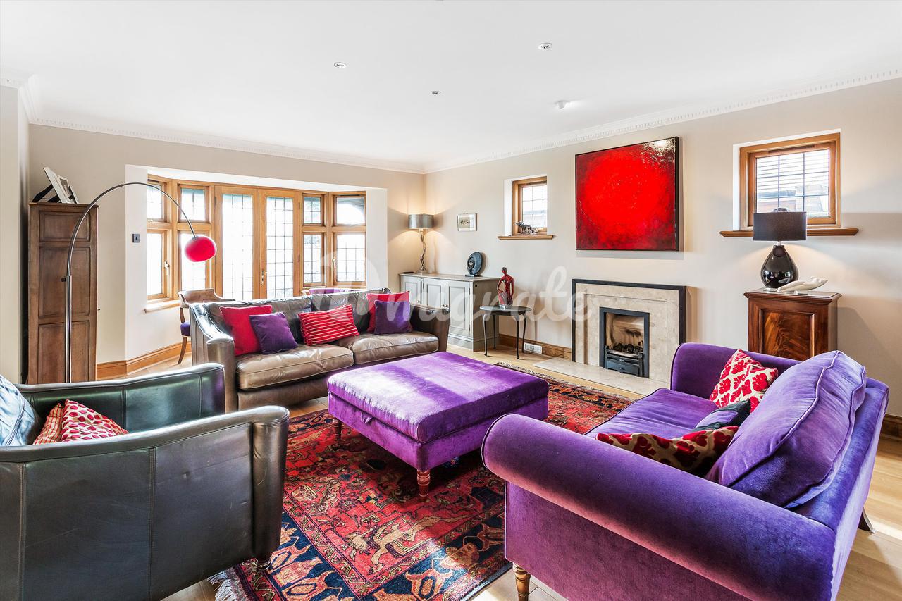 Сады были красиво озеленены, и из них открывается потрясающий вид на холмы Суррея. К задней части дома примыкает мощеная терраса с прямым доступом из всех комнат для приемов, что дает возможность проводить развлечения в помещении на открытом воздухе.