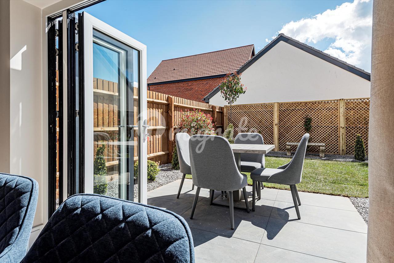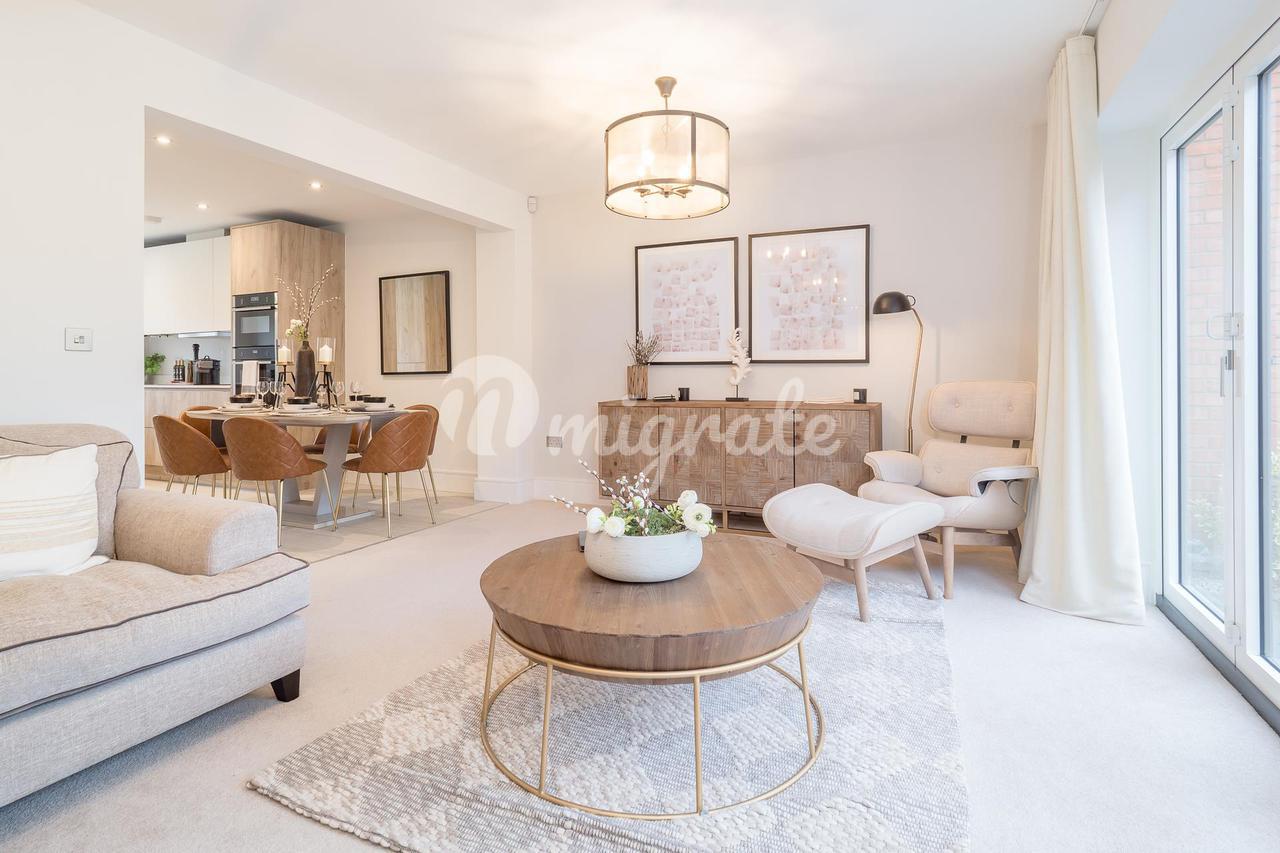 Номер 120, The Mountford — это современный двухквартирный дом с просторной гостиной, охватывающей заднюю часть дома, с застекленными двустворчатыми дверями, которые открываются в задний сад.