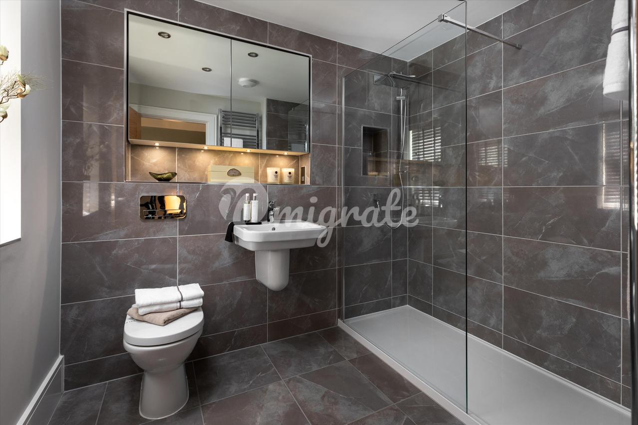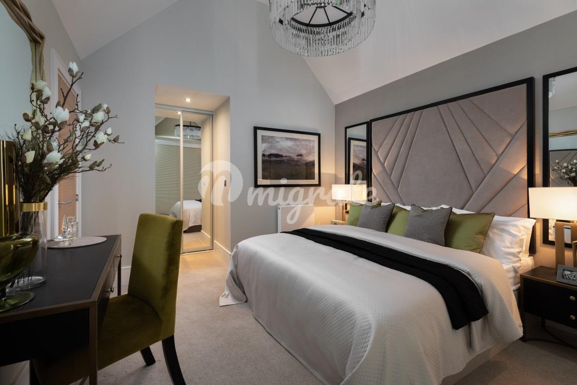 Чистый белый рендеринг, дополненный сланцево-синими деталями и кирпичной кладкой, придает дому № 56 — The Bennett поразительный современный фасад. В номерах наверху есть ряд премиальных функций, в первую очередь главная спальня с впечатляющим сводчатым потолком и балконом.