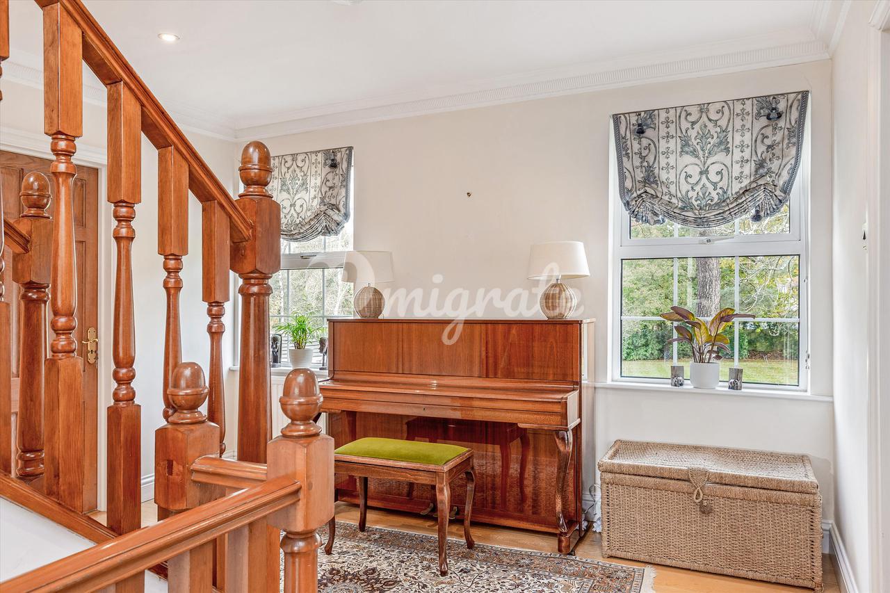 Из светлого и впечатляющего вестибюля можно попасть во все основные комнаты для приемов, включая семейную комнату и гостиную с дверями, ведущими во внутренний дворик и очаровательные ухоженные сады в задней части дома. В красивой кухне / зале для завтраков есть центральный остров с широким ассортиментом настенных и цокольных блоков и множеством встроенных приборов. Она ведет в оранжерею, откуда открывается прекрасный вид на сады и подъездную дорожку. Столовая, которая ведет из кухни, имеет приятный вид и двери во внутренний дворик.
