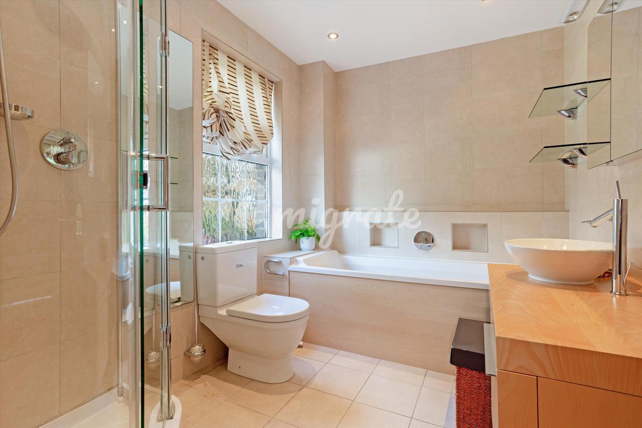 На втором этаже находится главная спальня с собственной ванной комнатой и прекрасным видом на сады в задней части дома. В доме есть две гостевые спальни, три спальни-люкс и семейная ванная комната.