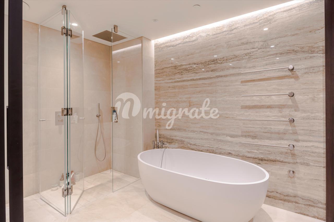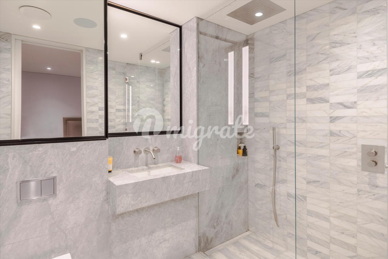 Эти апартаменты на третьем этаже состоят из прихожей с гардеробной и подсобным помещением, большой гостиной с достаточным пространством для обедов и кухни открытой планировки со встроенной бытовой техникой. В главном люксе есть гардеробная и современная ванная комната с отдельно стоящей ванной, а во второй спальне есть собственная душевая комната.