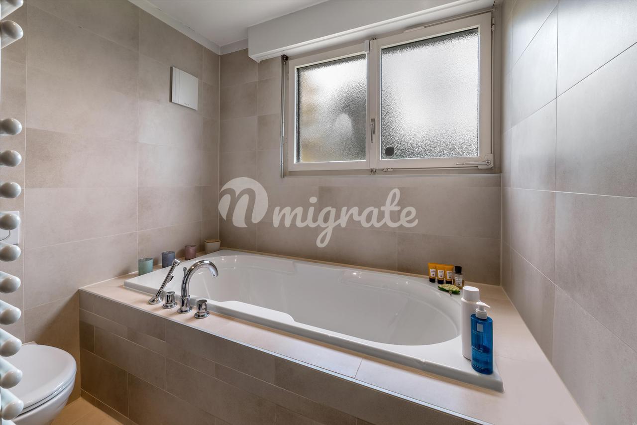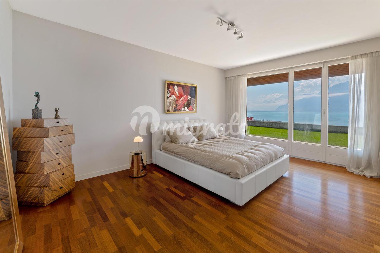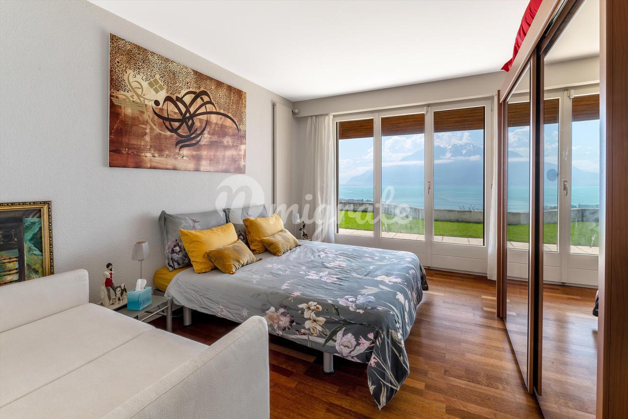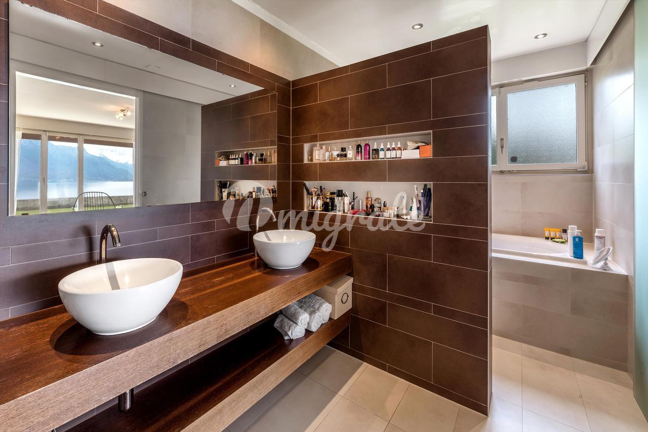 На втором этаже находится большая гостиная с высоким потолком, создающая уютную атмосферу своей яркостью благодаря широким окнам в стенах и дверям, ведущим в сад. Завершают этот уровень столовая, недавно отремонтированная кухня открытой планировки с высококачественной бытовой техникой и три спальни. В главной спальне есть прекрасный панорамный вид на озеро, большая гардеробная и ванная комната с двумя душевыми кабинами. Вторая спальня с выходом в сад, спальня / кабинет и душевая комната /туалет - в целом это спальный квартал.