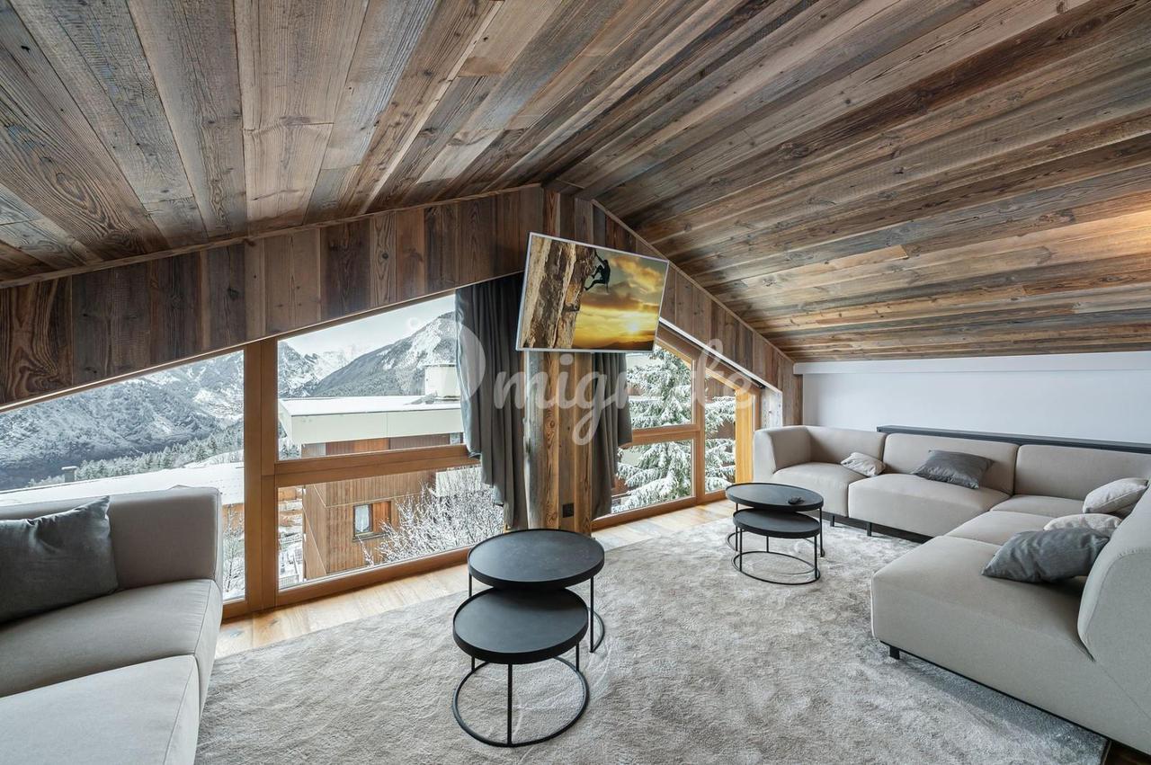 Эта новая резиденция расположена недалеко от Aquamotion, нового известного водного центра в Куршевеле и всего в двух шагах от горнолыжных склонов. Он имеет прямой доступ к Куршевелю 1850 на гондоле. 14 новых элитных квартир с великолепным панорамным видом на окружающие горы и долину. Каждая квартира предлагает красивые объемы, сочетающиеся с утонченным дизайном, сохраняя при этом подлинный дух деревни Куршевель. Каждая квартира имеет собственный подвал, помещение для хранения лыж и автостоянку. Квартиры от 1 до 4 спален. Эта превосходная двухуровневая квартира состоит из гостиной с кухней открытого плана, трех спален с двуспальными кроватями и детской спальни. *Обратите внимание, что на карте указана только ближайшая деревня/город, а не точное местоположение объекта*