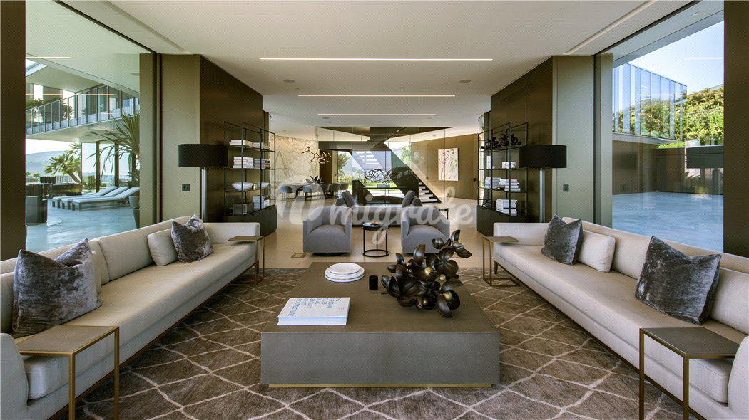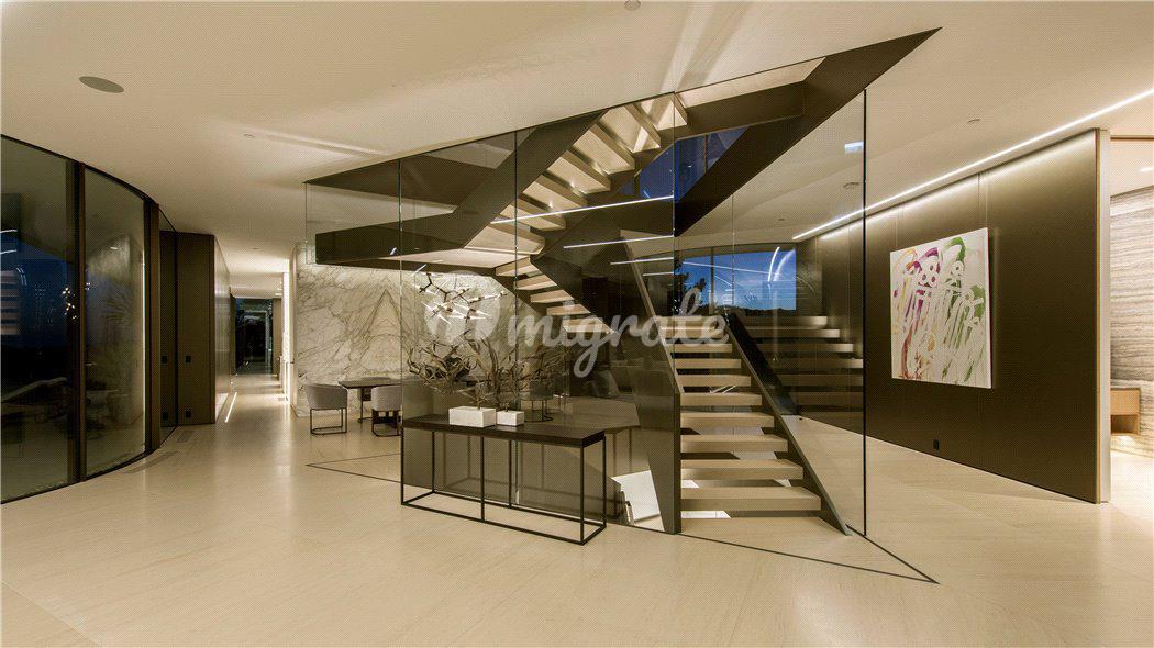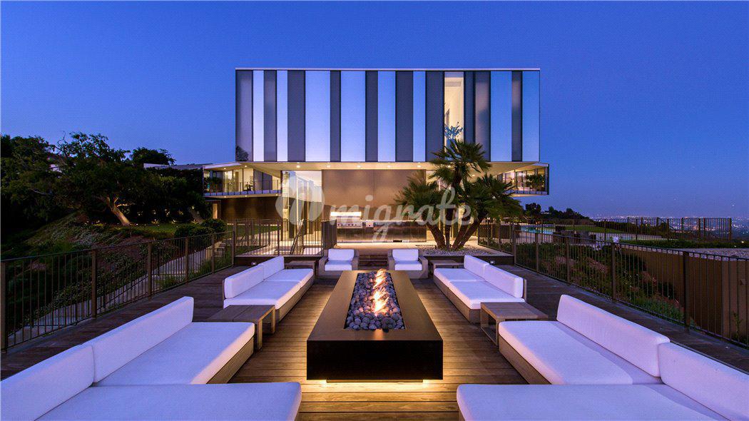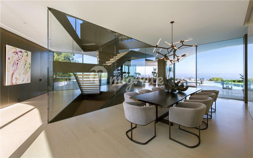 Этот дом представляет непревзойденную изысканность и истинную роскошь. Дом расположен на закрытой охраняемой территории на частном мысе в районе Бель-Эйр. Изо всех точек открываются захватывающие виды на Тихий океан и центр Лос-Анджелеса. Вилла состоит из трех уровней. Одним из архитектурных достижений является плавающая лестница. На вилле находится парковка более чем на 30 автомобилей, множество террас общей площадью более 557 кв. м и зон отдыха с каминами.