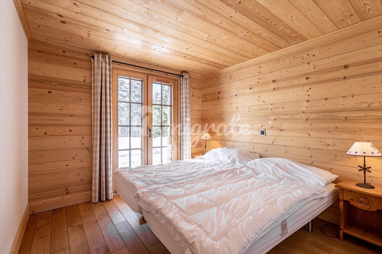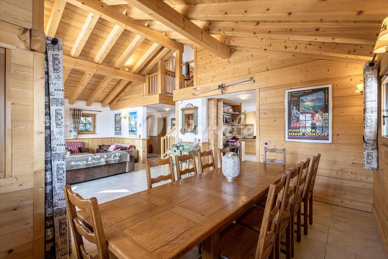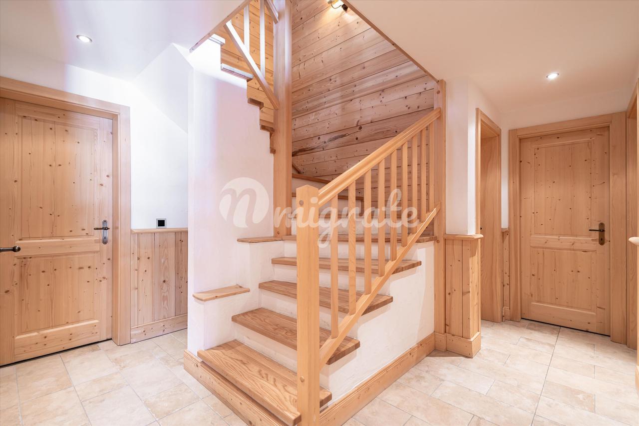 Недвижимость расположена на участке площадью 786 кв.м и имеет 240 кв. м жилой площади, распределенной на трех этажах, с основной жилой площадью на первом уровне. В нем есть светлая гостиная с камином, прямой выход на террасу на южной стороне с видом на окружающие горы, полностью оборудованная кухня и обеденная зона на этом этаже. Как на первом, так и на верхнем этажах есть пять спален и четыре ванные комнаты, а в шале также есть красивый сад и джакузи на открытом воздухе.