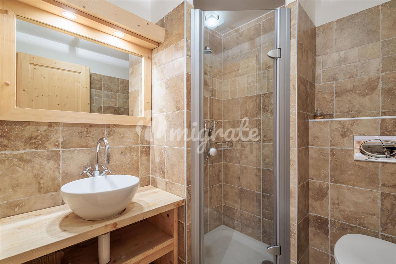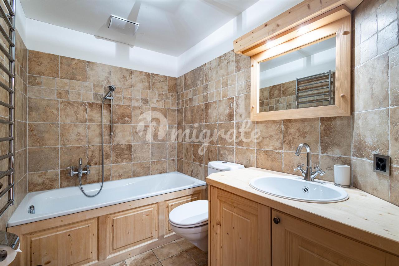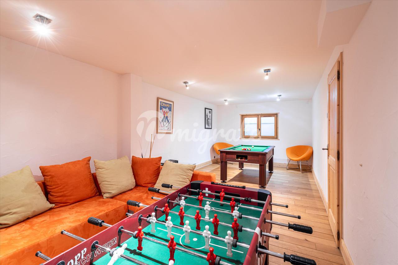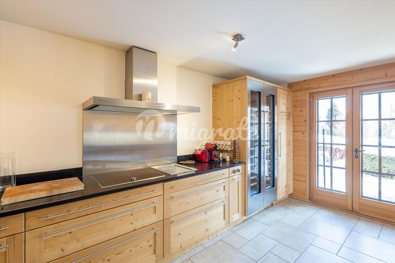 Недвижимость расположена на участке площадью 786 кв.м и имеет 240 кв. м жилой площади, распределенной на трех этажах, с основной жилой площадью на первом уровне. В нем есть светлая гостиная с камином, прямой выход на террасу на южной стороне с видом на окружающие горы, полностью оборудованная кухня и обеденная зона на этом этаже. Как на первом, так и на верхнем этажах есть пять спален и четыре ванные комнаты, а в шале также есть красивый сад и джакузи на открытом воздухе.