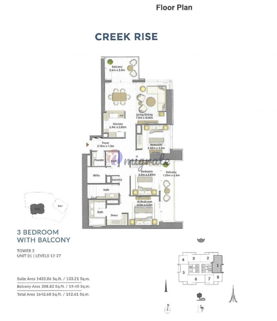 Мы рады представить вам эту квартиру с тремя спальнями в Creek Rise Tower 2, расположенной в гавани Дубай Крик. Creek Rise Tower 2 предлагает роскошную жизнь с тренажерным залом, бассейном и игровой площадкой. К услугам гостей высокоскоростные лифты, крытая парковка и круглосуточная охрана. Расположенный рядом с магазинами, ресторанами и развлекательными центрами, он обеспечивает живое сообщество и легкий доступ к достопримечательностям.